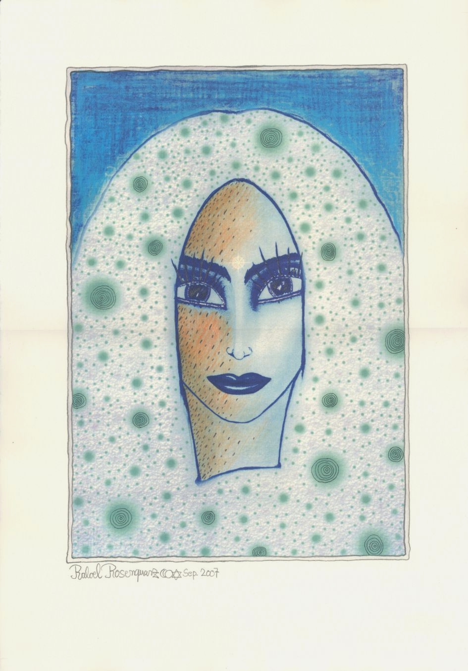 Objectbeschreibung: Rapidograph, Wachskreide und Buntstifte auf Digiprint. Papier: Römerturm Dokumentbütten. 29,5 cm auf 42,5 cm signiert, Sep. 2007