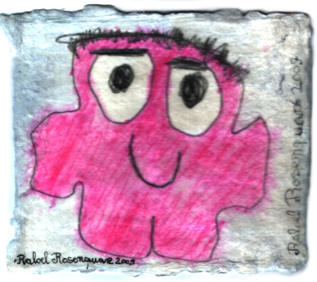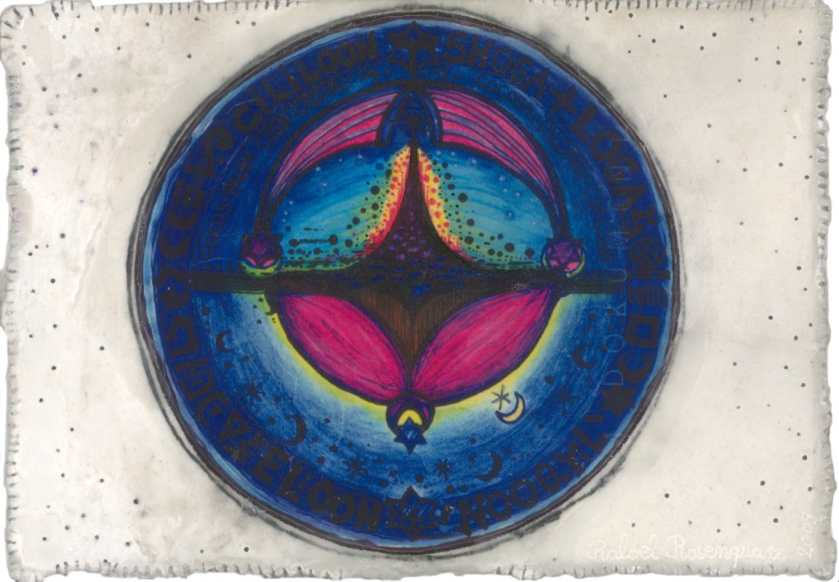 Objectbeschreibung: Wachs, Tusche, Aquarell und Buntstifte auf sehr schweres Büttenpapier. (Waxographic) 19 cm auf 16,5 cm signiert, 2009