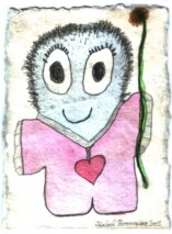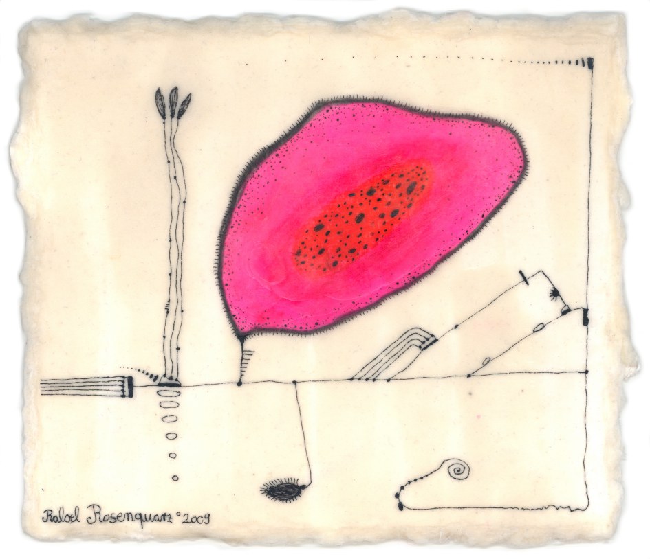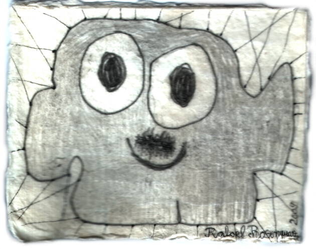 Objectbeschreibung: Bleistift, Tusche und Buntstifte auf sehr schweres Büttenpapier. 18 cm auf 29,5 cm signiert, 2009