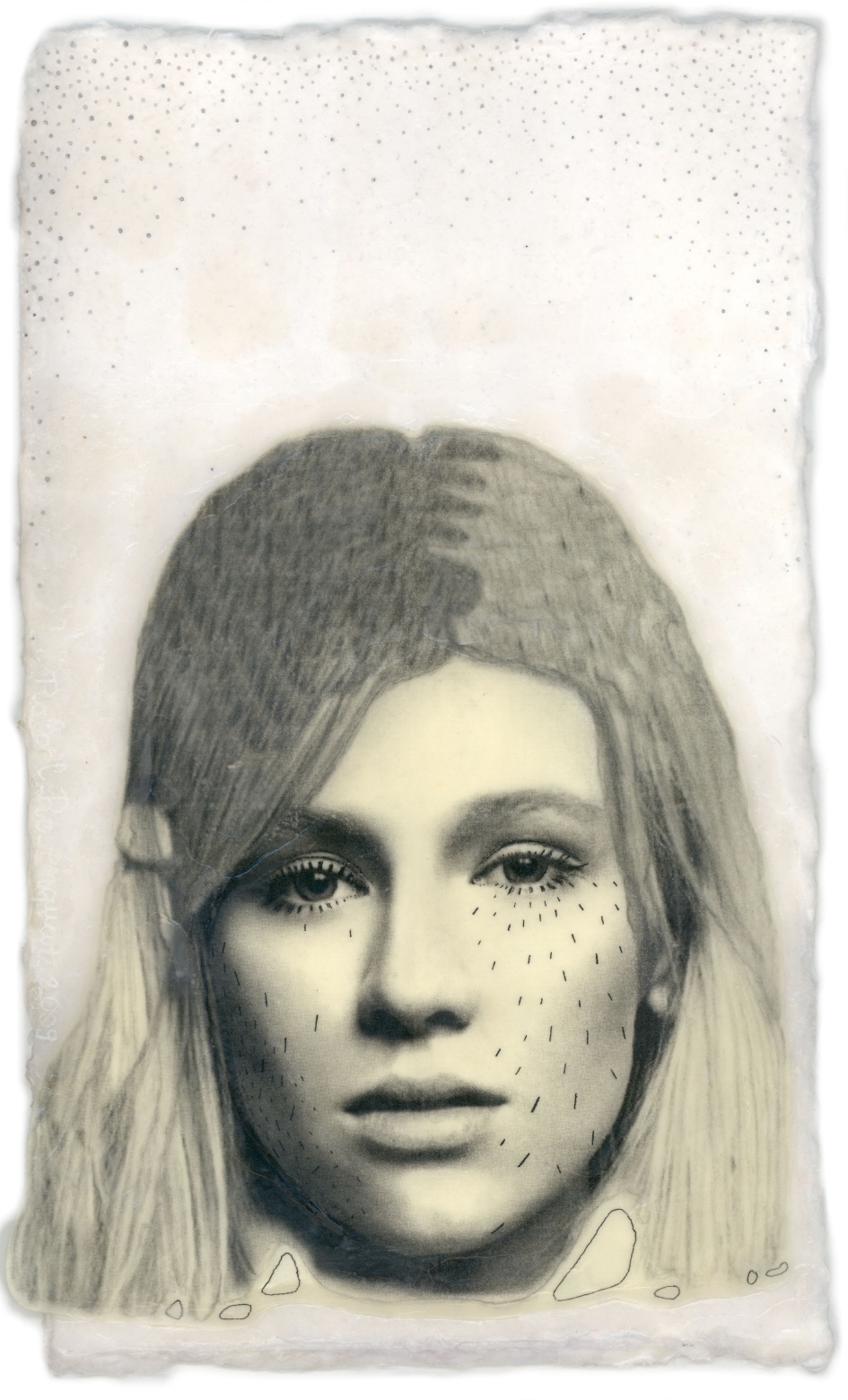 Objectbeschreibung: Tusche, artifizielle Beschädigung, Digitaldruck auf Zerkallbütten. ca. 30 cm auf ca. 21 cm signiert, 2009