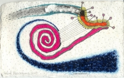 Objectbeschreibung: Wachs, Bleistift und Buntstifte auf sehr schweres Büttenpapier. (Waxographic) 17 cm auf 15 cm signiert, 2009