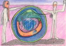 Objectbeschreibung: Wachs, Bleistift, Buntstifte und Aquarell auf sehr schweres Büttenpapier. (Waxographic) 17,5 cm auf 23,5 cm signiert, 2009