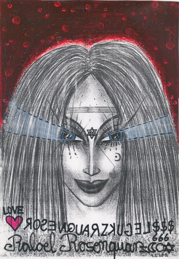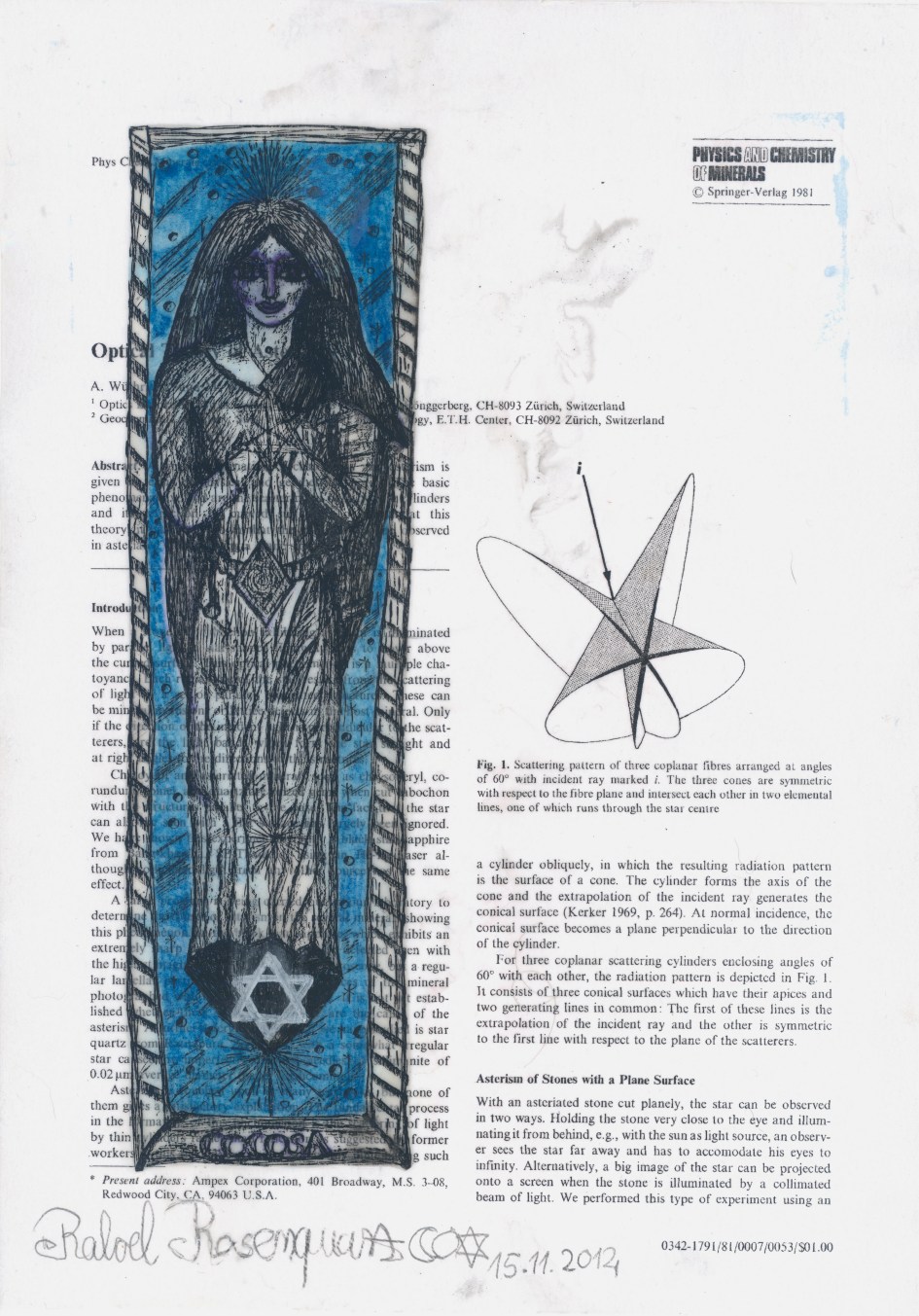 Objectbeschreibung: Laserdruck mit Aquarellfarben und Lackstift. 20,9 cm auf 29,6 cm Apokalyptische Signatur, 5. 11. 2012