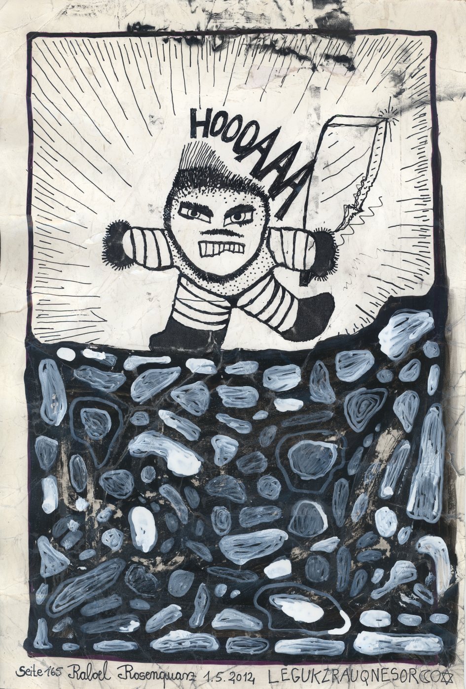 Objectbeschreibung: Laserdruck, Tusche, Lackstift auf gestrichenes Papier. 20 cm auf 29,5 cm signiert, 1. 5. 2012