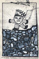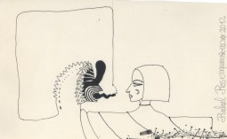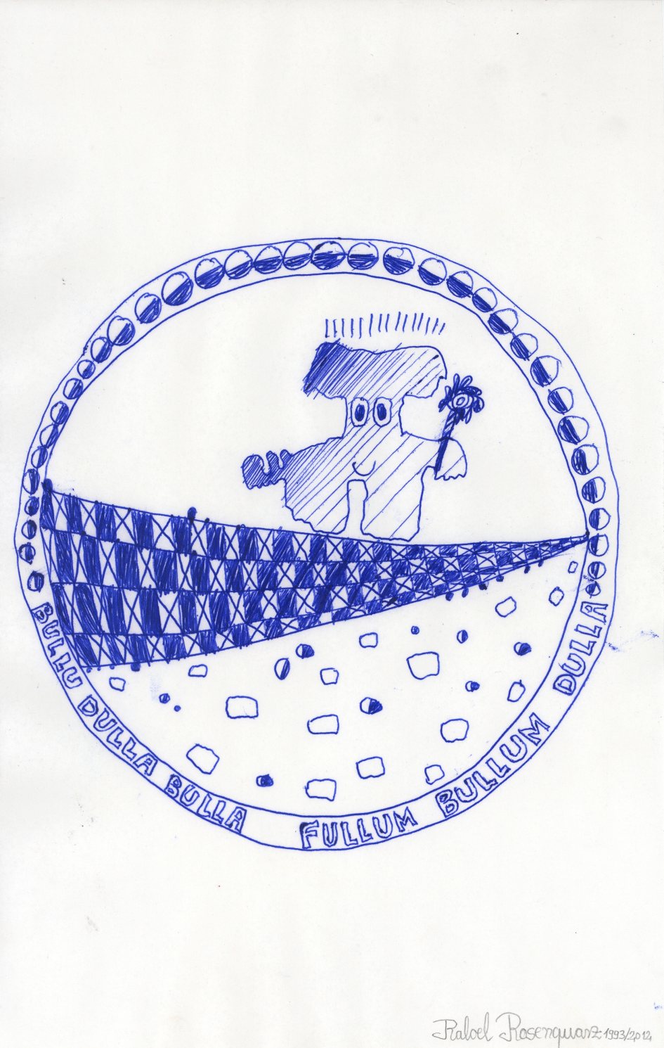 Objectbeschreibung: Kugelschreiber auf Papier (Blatt aus Skizzenbuch). 18,2 cm auf 29,6 cm nachträglich signiert, 1993/2012