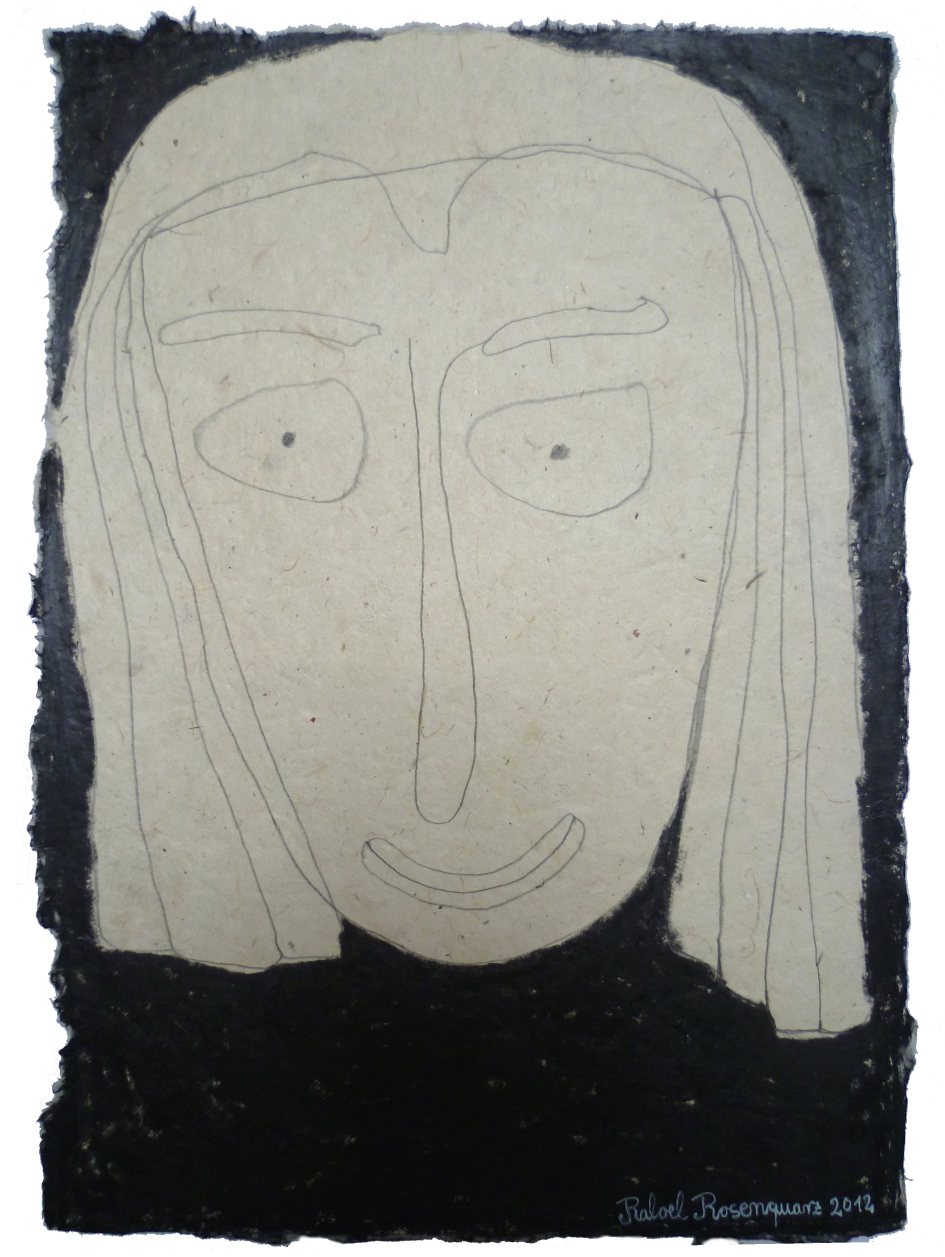 Objectbeschreibung: Bleistift und Wachskreide auf Bananenschalenbütten. 25 cm auf 35,5 cm signiert, 2012