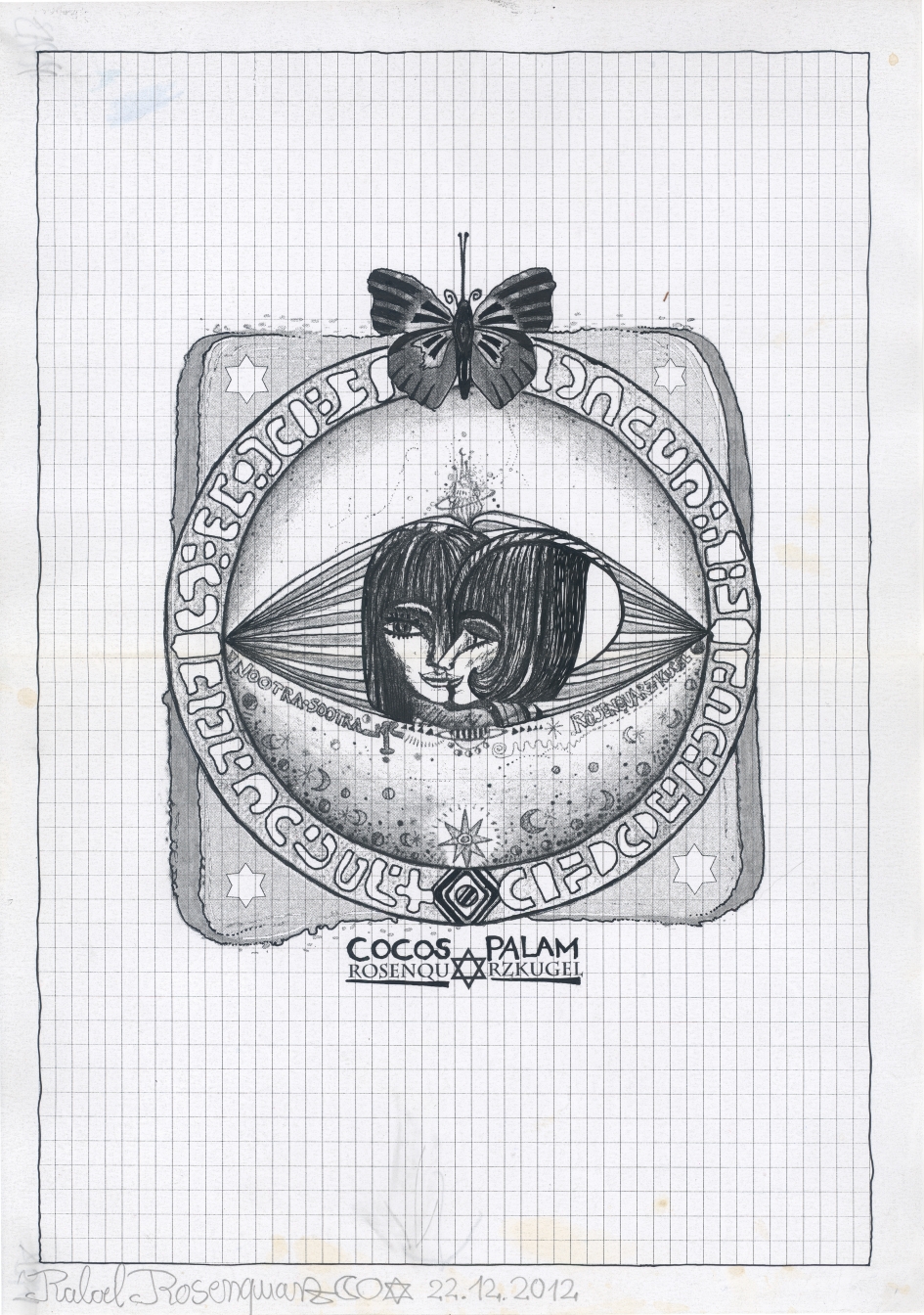 Objectbeschreibung: Rapidograph und Laserdruck auf kariertes Papier. 21 cm auf 29,5 cm signiert, 22. 12. 2012