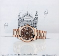 Objectbeschreibung: Rapidograph auf ROLEX-Reklame. 27,7 cm auf 26 cm signiert, OKT. 2012
