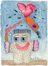 Objectbeschreibung: Veredelte Farbkopie von 1990 erneut übermalt (Blatt aus Skizzenbuch). 20,3 cm auf 29,5 cm signiert, 8. 2. 2012