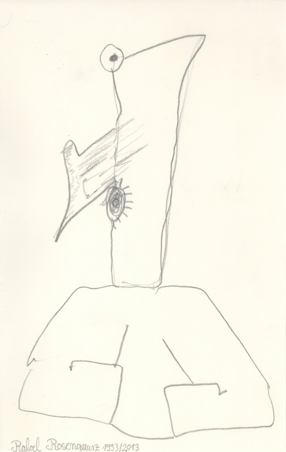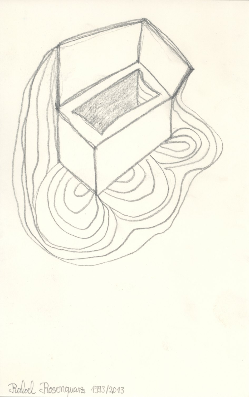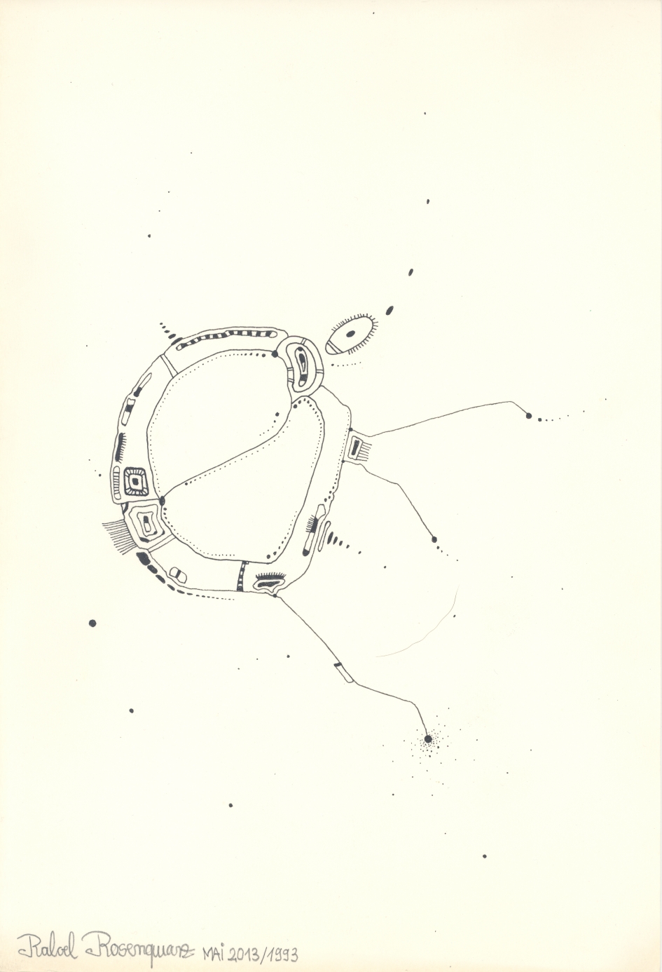 Objectbeschreibung: Rapidograph auf Papier. Skizze von 1993 im Altpapier gefunden und nachträglich überzeichnet. 20 cm auf 29,4 cm signiert, Mai 2013/1993