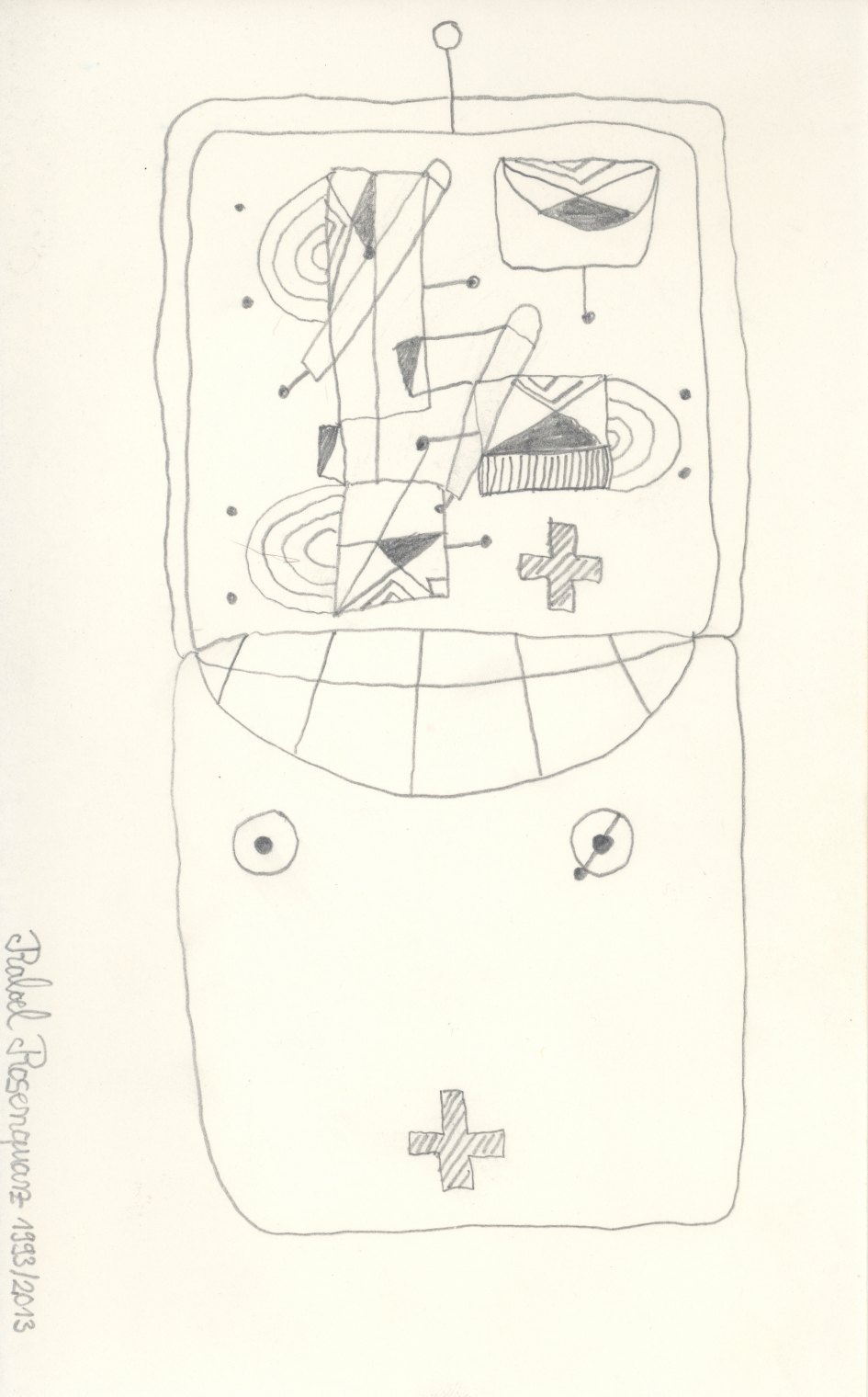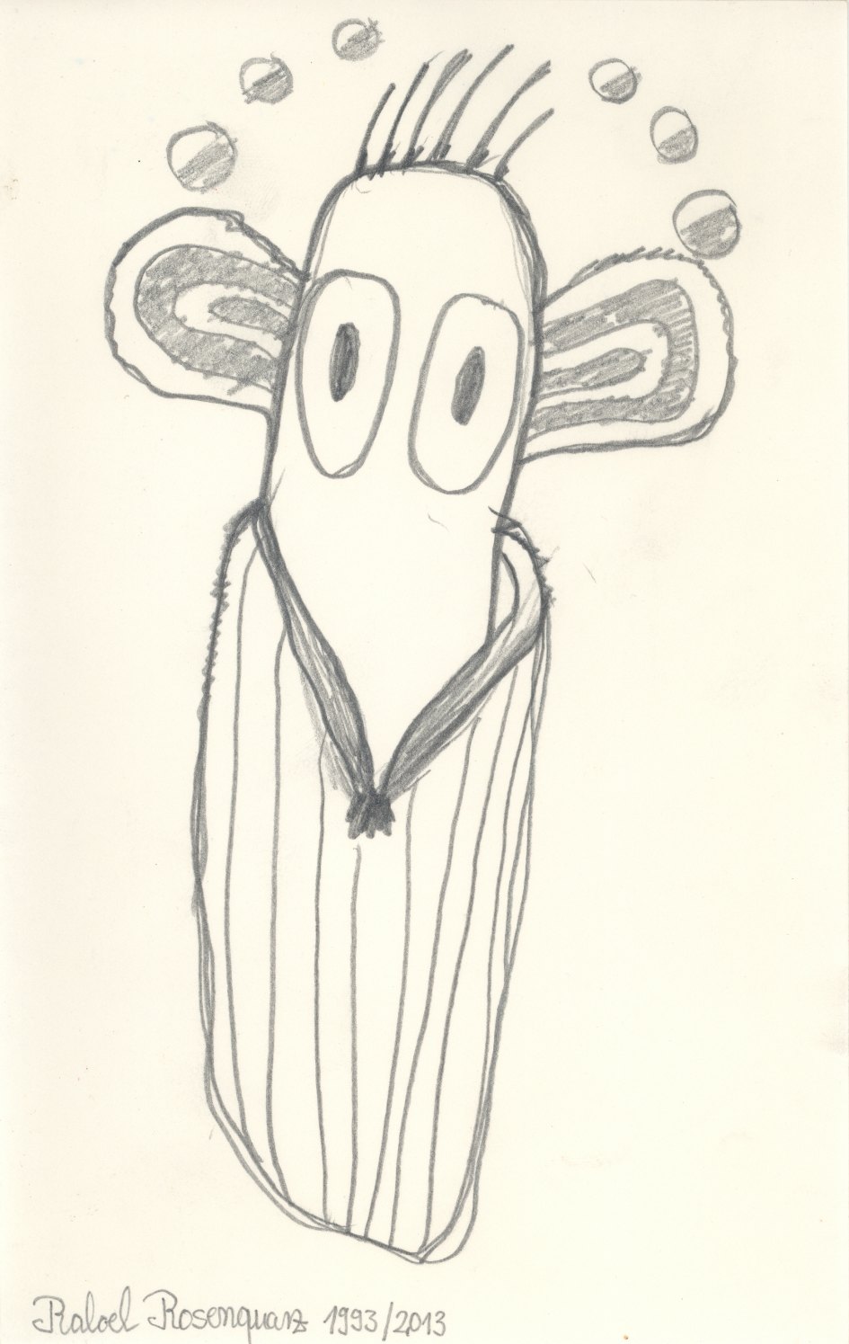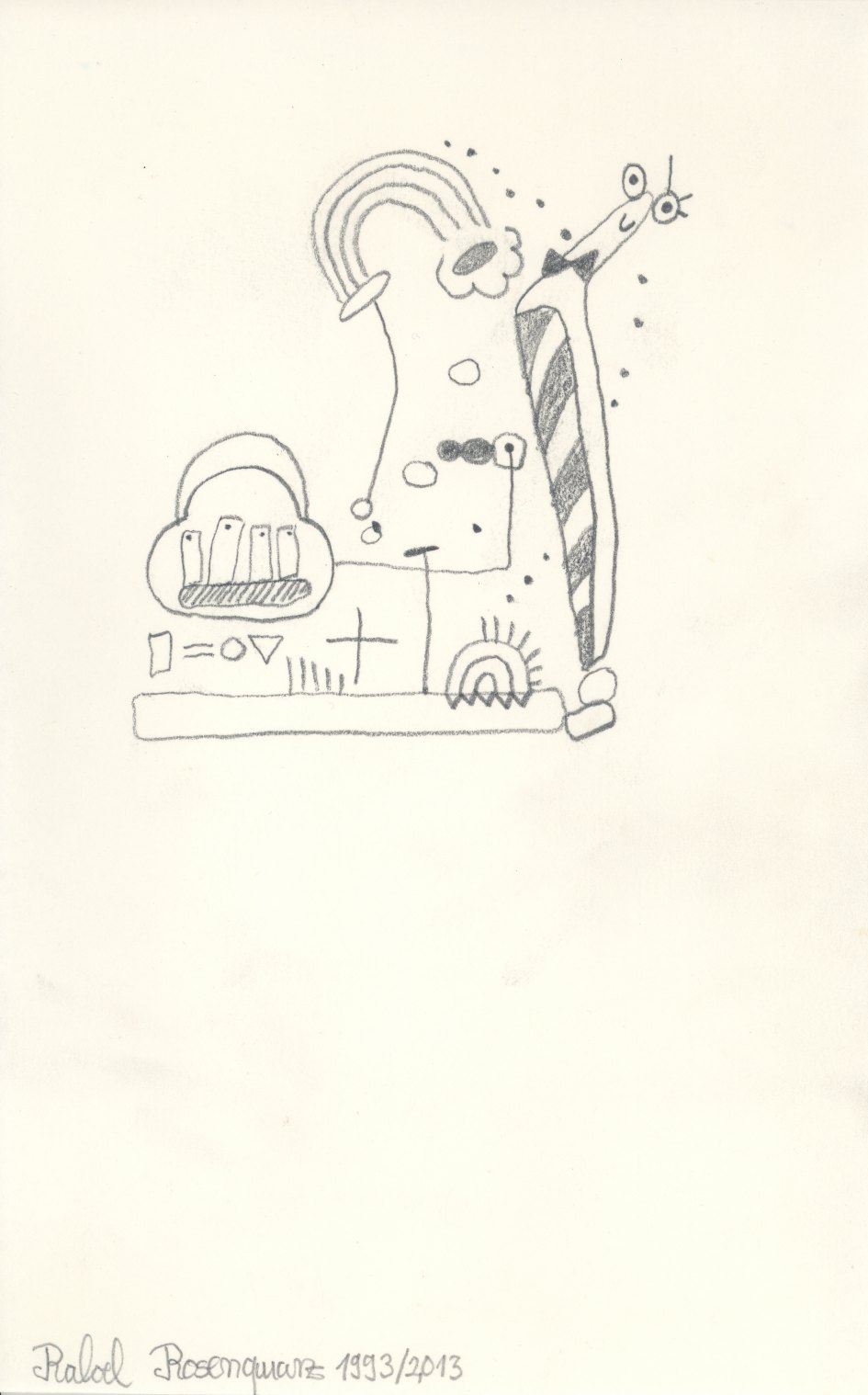 Objectbeschreibung: Rapidograph auf Papier. Skizze von 1993 im Altpapier gefunden und nachträglich überzeichnet. 20 cm auf 29,4 cm signiert, Mai 2013/1993