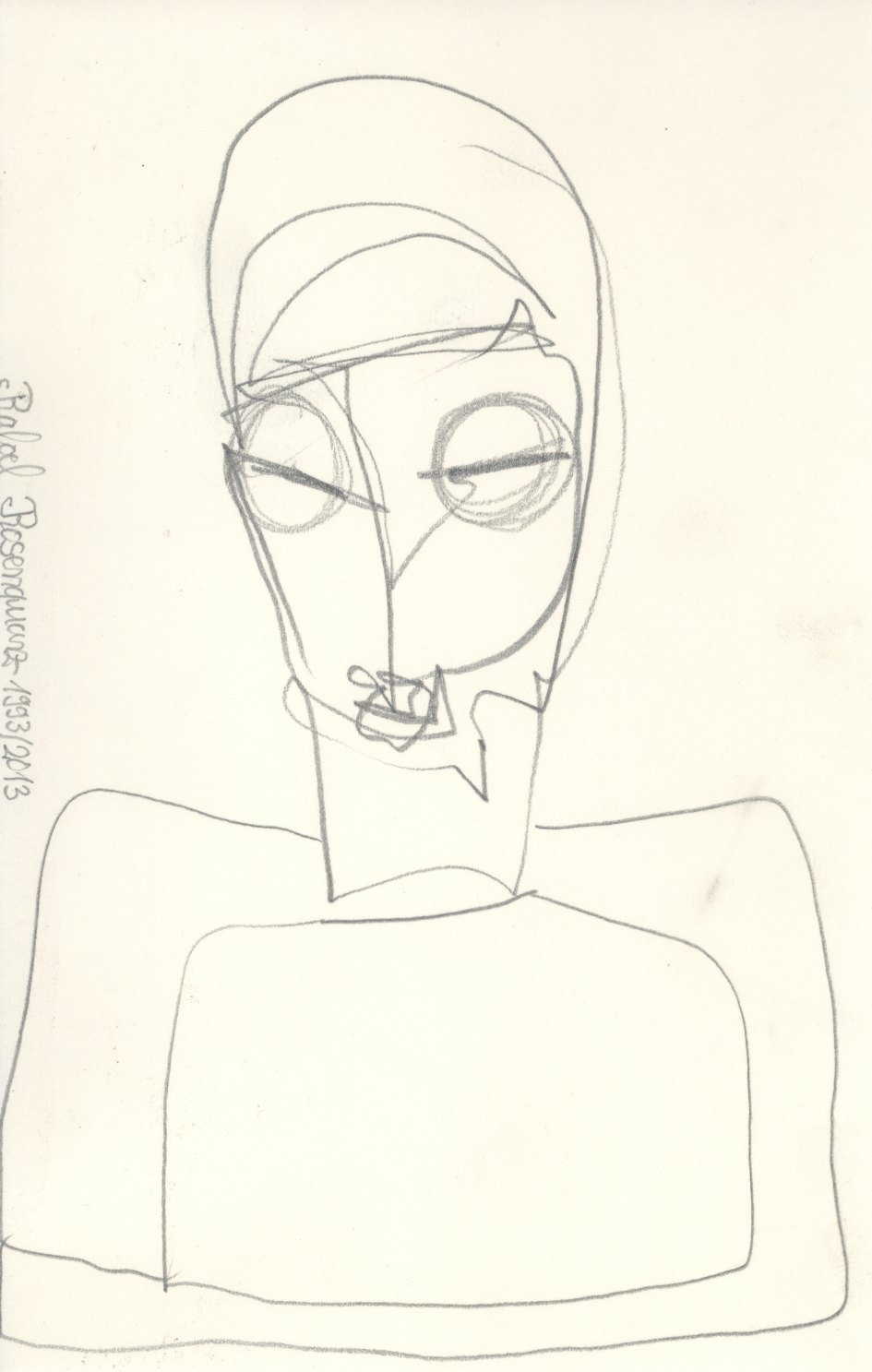 Objectbeschreibung: Bleistift auf säurefreies Papier. Blatt aus Skizzenbuch, nachträglich signiert. 13,4 cm auf 20,8 cm signiert, 1993/2013