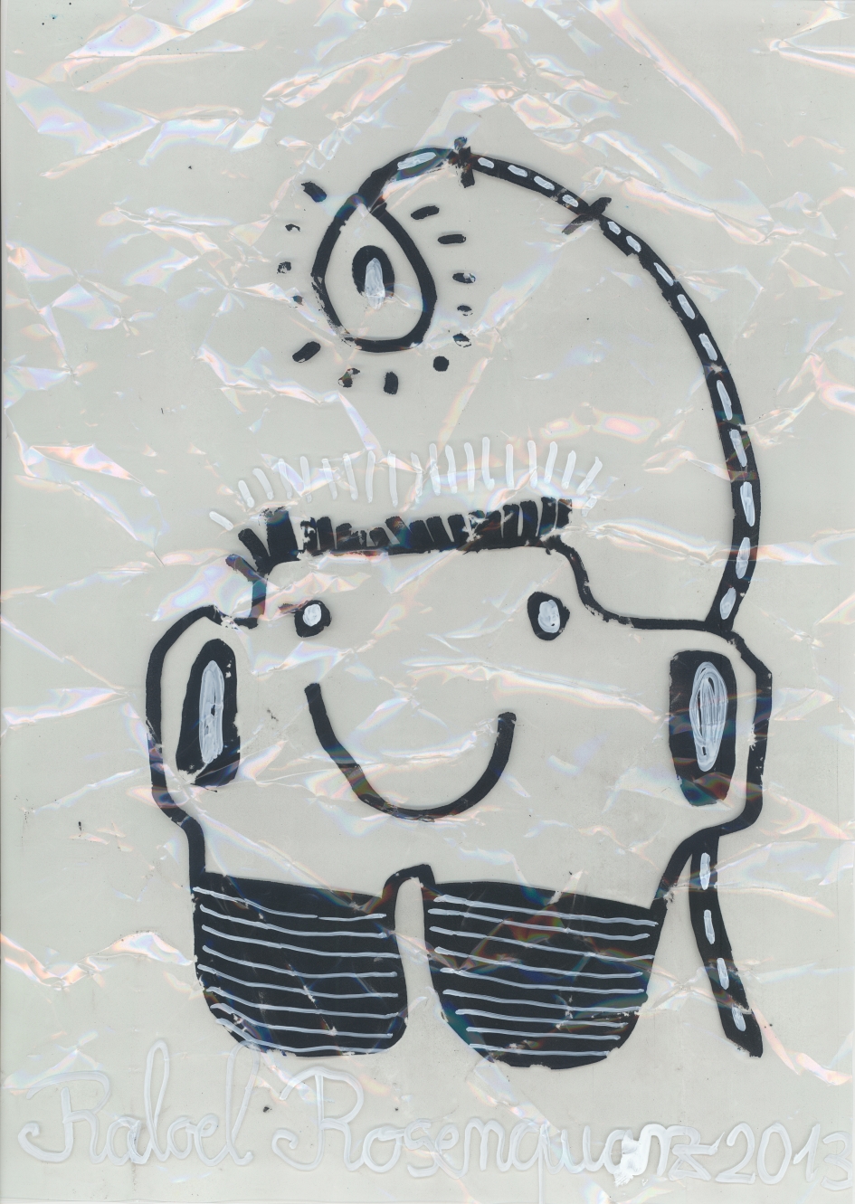 Objectbeschreibung: Lackstift auf Folienlaserdruck. 21 cm auf 29,5 cm signiert, 2013