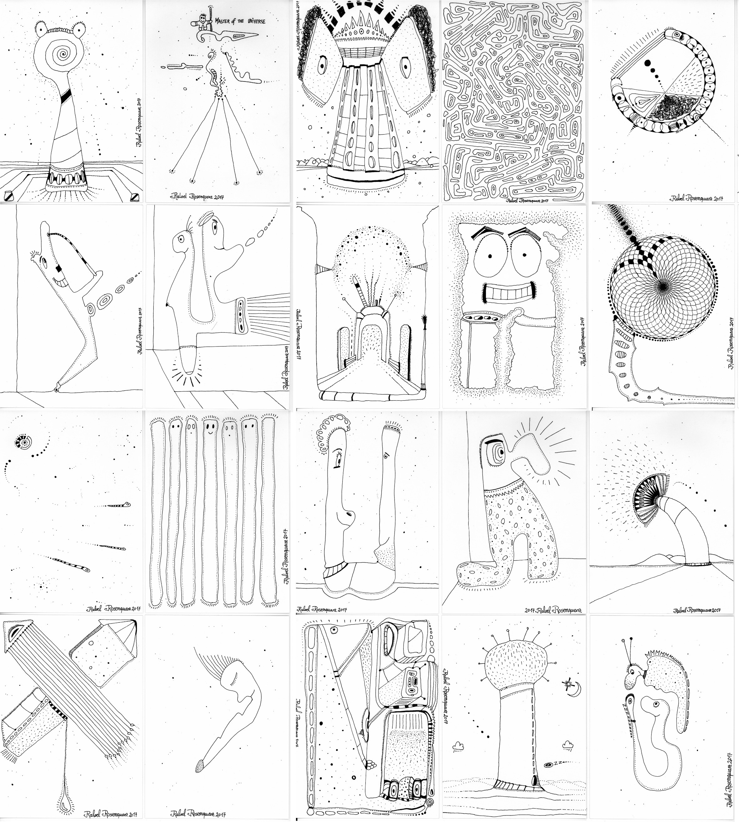 Objectbeschreibung: 20 Zeichnungen mit Rapidograph auf Zeichenkarton. jeweils 10,5 cm auf 14,8 cm signiert, 2017