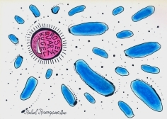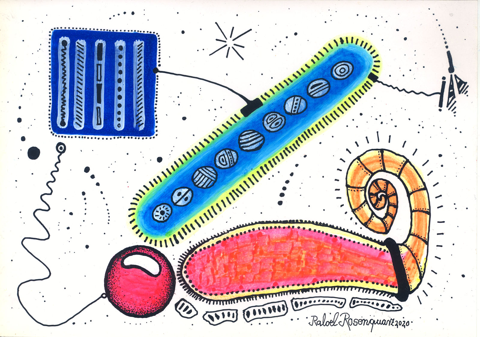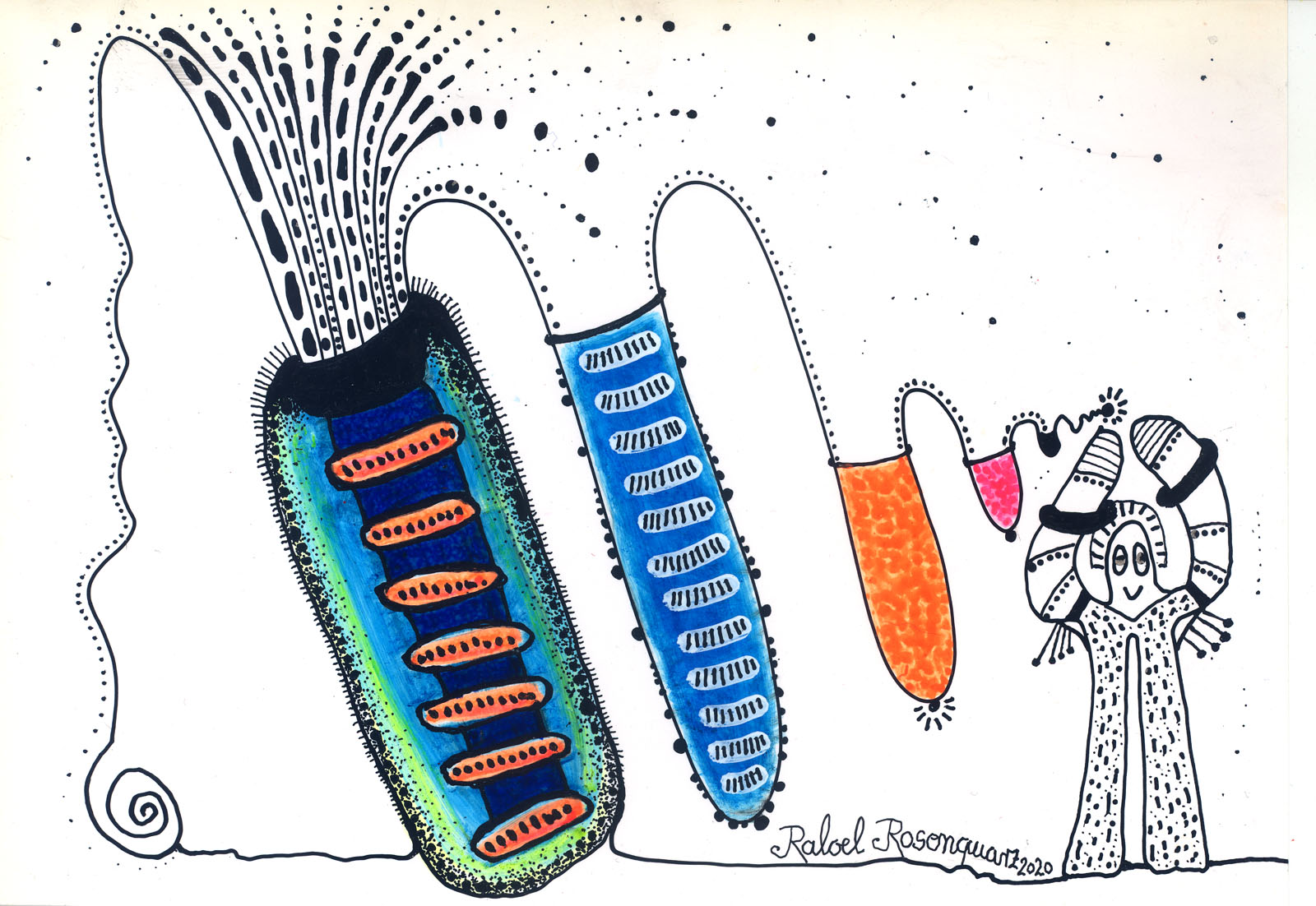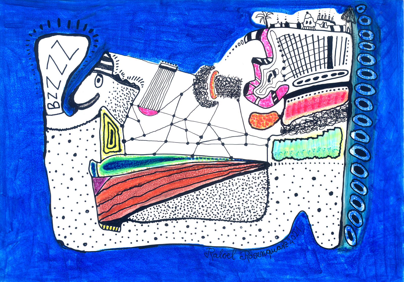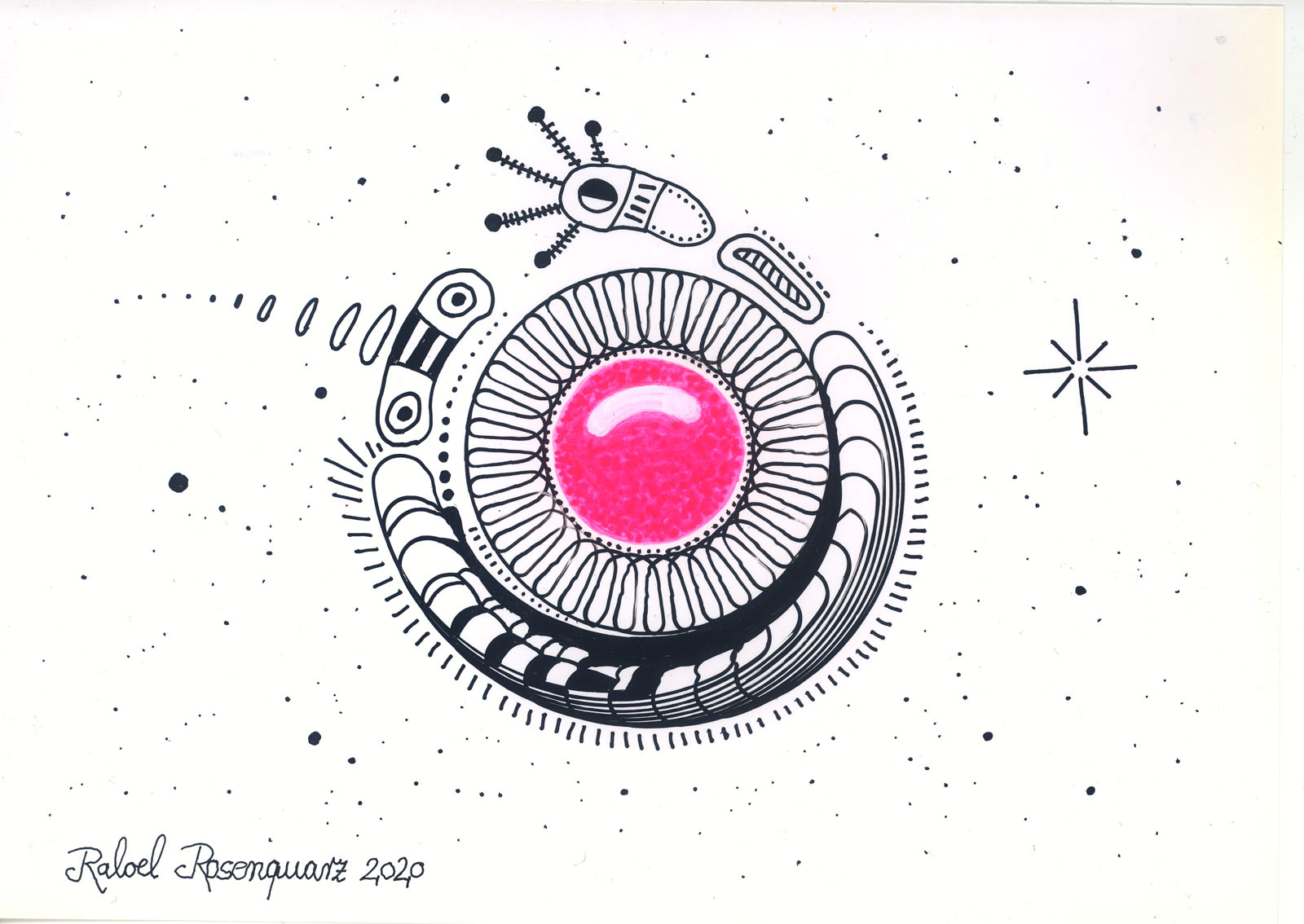 Objectbeschreibung: Textmarker und Rapidograph auf Zeichenkarton. 18 cm auf 13 cm signiert, 2020