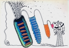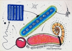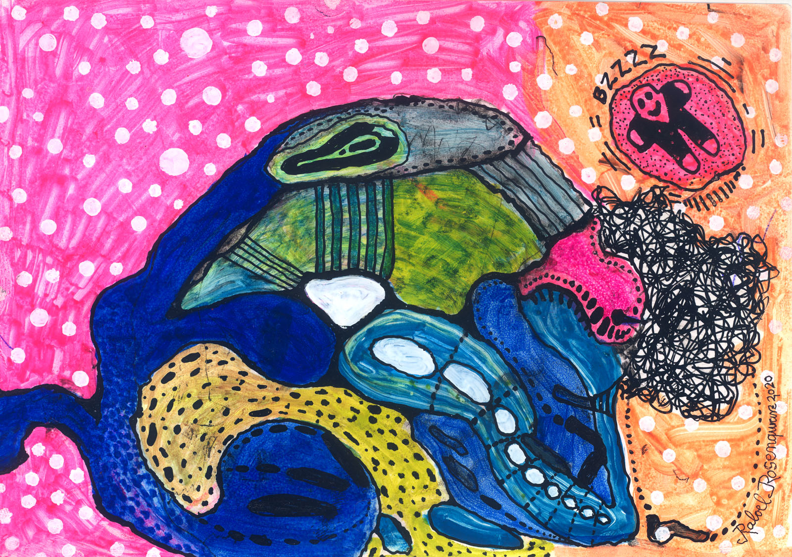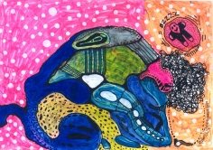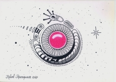 Objectbeschreibung: Lackstift, Textmarker und Rapidograph auf Zeichenkarton. 18 cm auf 13 cm signiert, 2020