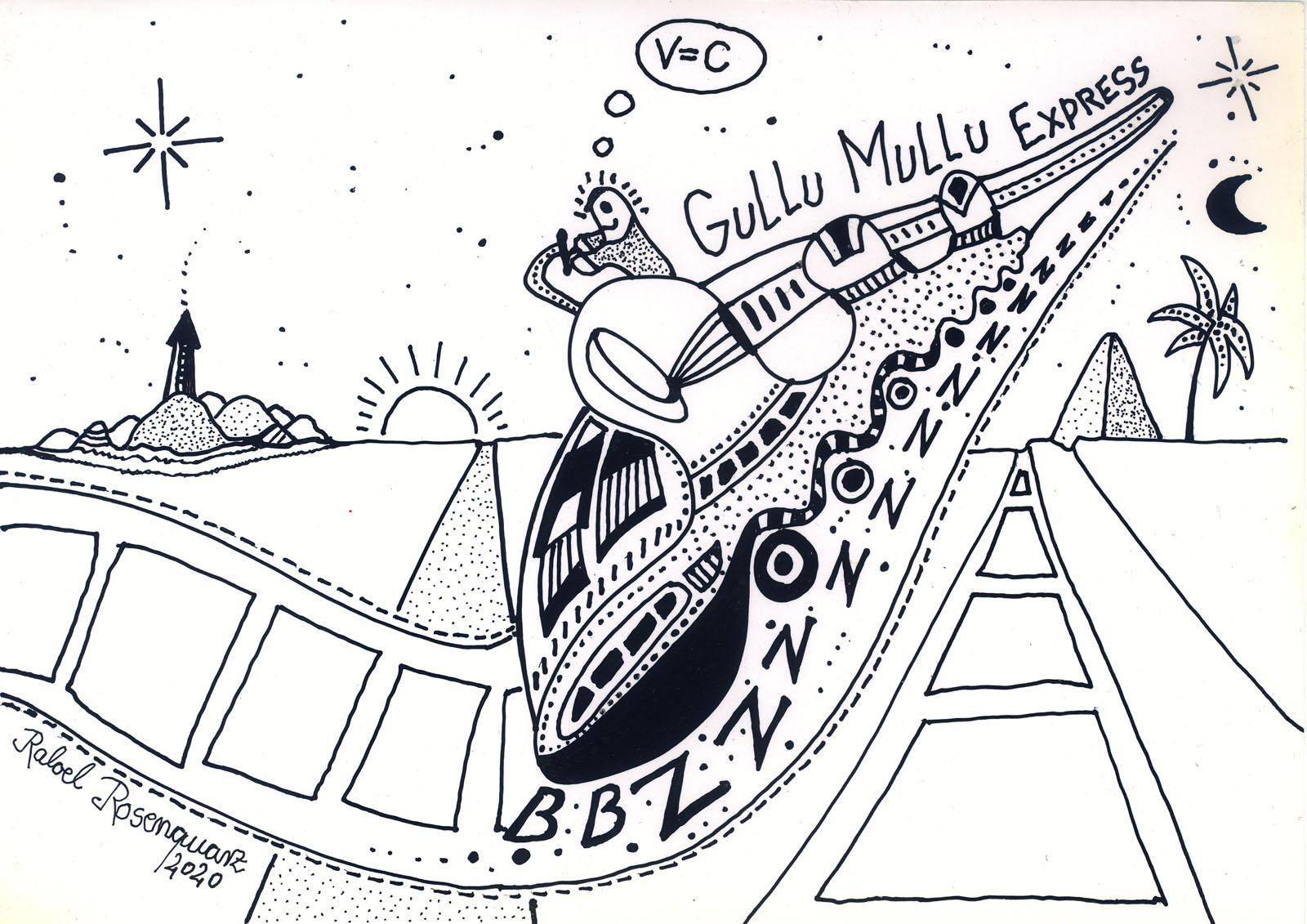 Werkeverz.: PAP/”GulluMullu fliegt mit Raumschiff aus BZZZZ”/180*130*0*/2041