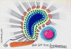 Objectbeschreibung: Lackstift, Textmarker und Rapidograph auf Zeichenkarton. 18 cm auf 13 cm signiert, 2021
