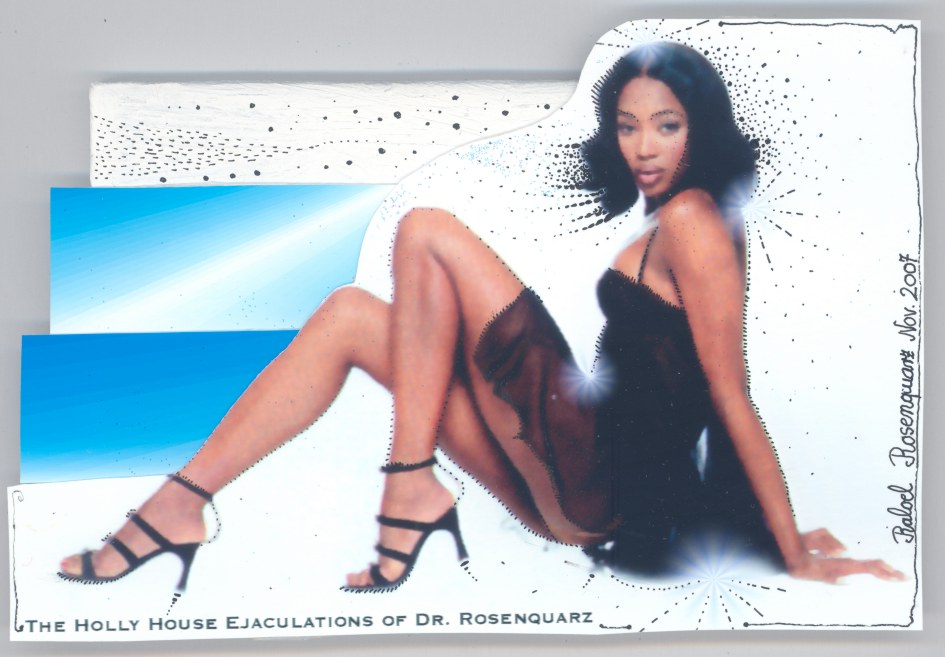 Objectbeschreibung: Komplexes Aggregat verschiedener Drucktechniken und anderer künstlerischer Anwendungen. Zyklus: The Holy House Ejacultions of Dr. Rosenquarz Pseudo Graphicka (Originalstatus) 6,8 cm auf 12,6 cm (Größe ohne Objectrahmen) signiert, Nov. 2007