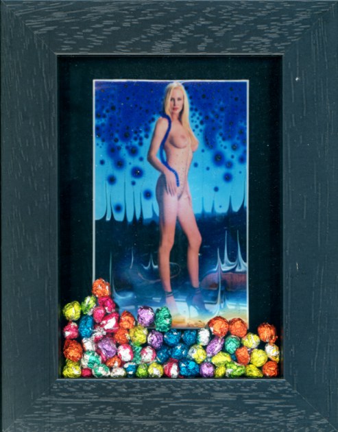Objectbeschreibung: Komplexes Aggregat verschiedener Drucktechniken und anderer künstlerischer Anwendungen. Zyklus: The Holy House Ejacultions of Dr. Rosenquarz Pseudo Graphicka (Originalstatus) 14 cm auf 9 cm (Größe ohne Objectrahmen) signiert, Nov. 2007