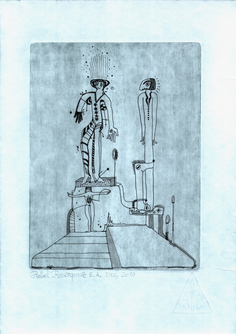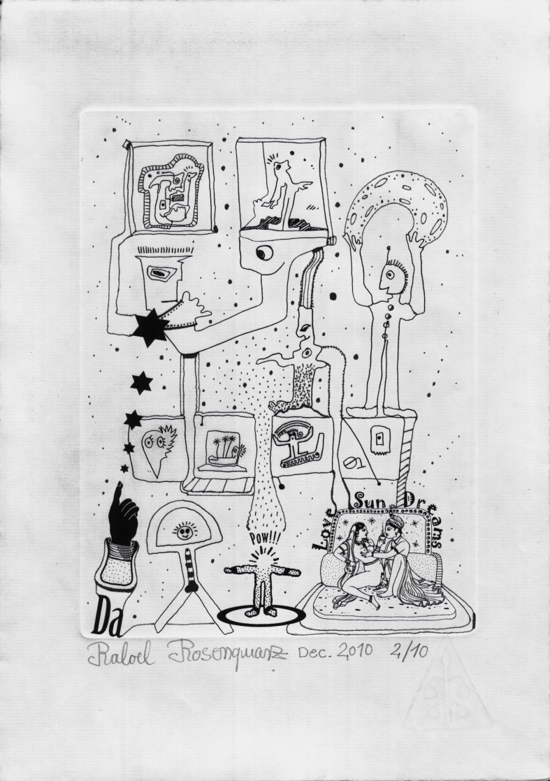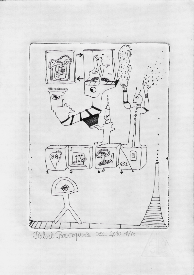 Objectbeschreibung: Komplexes Aggregat verschiedener Drucktechniken und anderer künstlerischer Anwendungen auf Bütten. Pseudo Graphicka (Originalstatus) 20,9 cm auf 29,6 cm signiert, 2010