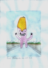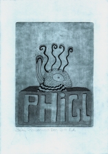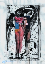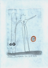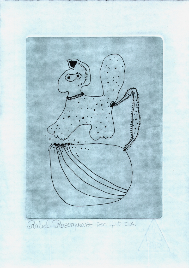 Objectbeschreibung: Komplexes Aggregat verschiedener Drucktechniken und anderer künstlerischer Anwendungen auf Bananenschalenbütten. Pseudo Graphicka (Originalstatus) 17,7 cm auf 24,5 cm signiert, 2010