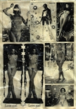 Objectbeschreibung: Komplexes Aggregat verschiedener Drucktechniken und anderer künstlerischer Anwendungen auf Bananenschalenbütten. Pseudo Graphicka (Originalstatus) 17,4 cm auf 24,5 cm signiert, 2010