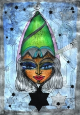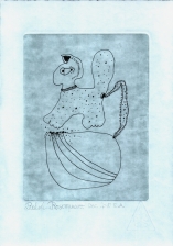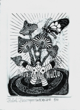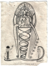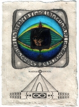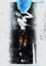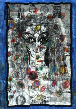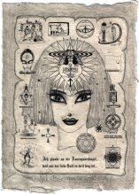 Objectbeschreibung: Komplexes Aggregat verschiedener Drucktechniken und anderer künstlerischer Anwendungen auf Bananenschalenbütten. Pseudo Graphicka (Originalstatus) 23,5 cm auf 17,5 cm signiert, 2010