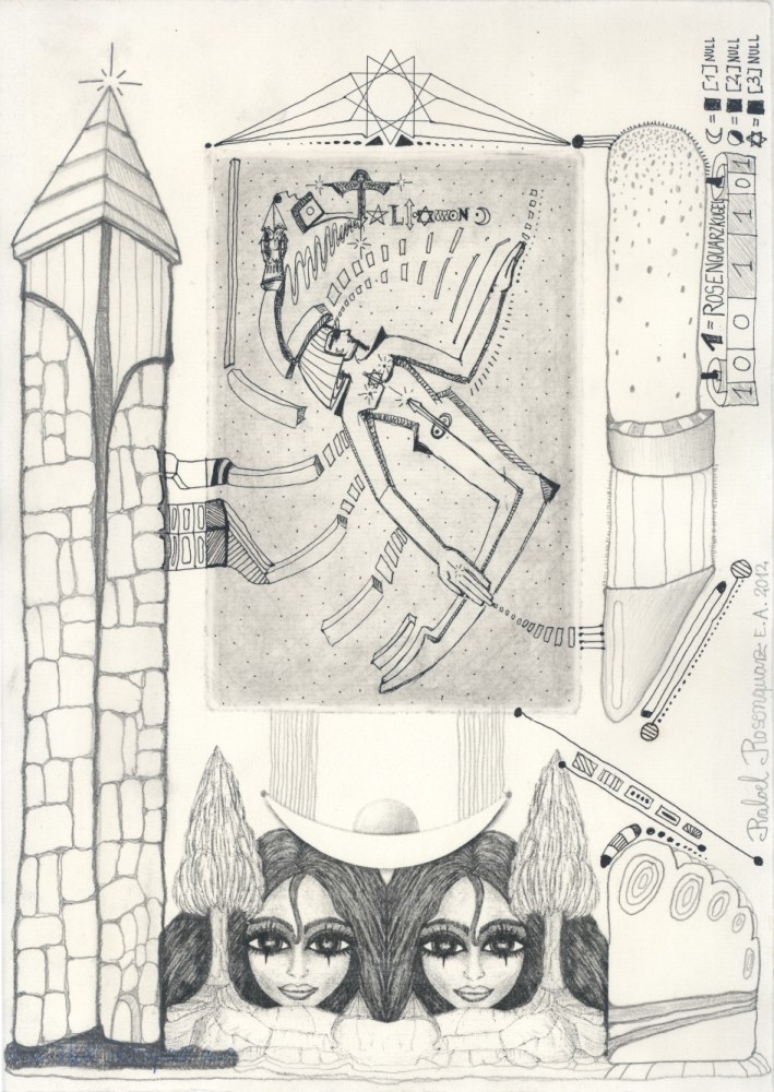Objectbeschreibung: Komplexes Aggregat verschiedener Drucktechniken und anderer künstlerischer Anwendungen auf Maibütten. Pseudo Graphicka (Originalstatus) 20,9 cm auf 29,7 cm signiert, 2012