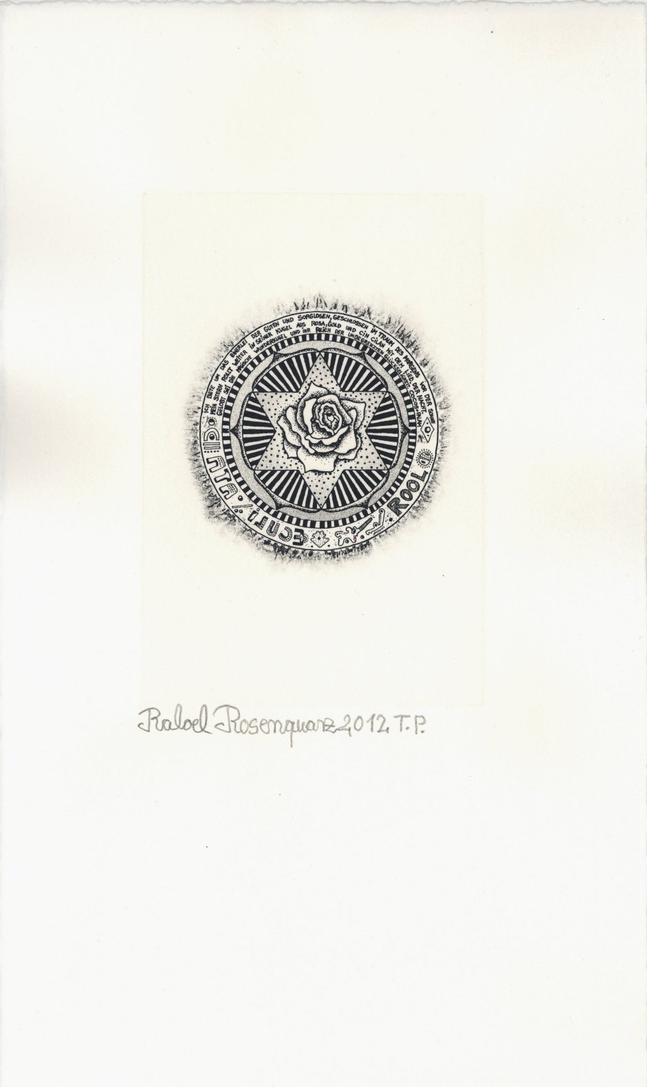 Objectbeschreibung: Komplexes Aggregat verschiedener Drucktechniken und anderer künstlerischer Anwendungen auf Kupferdruckbütten. Pseudo Graphicka (Originalstatus) 19 cm auf 26 cm signiert, 2012