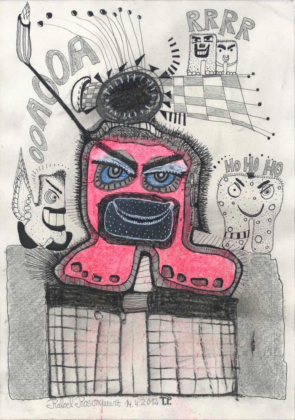 Objectbeschreibung: Komplexes Aggregat verschiedener Drucktechniken und anderer künstlerischer Anwendungen auf Maibütten. Pseudo Graphicka (Originalstatus) 20,7 cm auf 29,5 cm signiert, Mai 2012