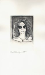 Objectbeschreibung: Komplexes Aggregat verschiedener Drucktechniken und anderer künstlerischer Anwendungen auf Kupferdruckbütten. Pseudo Graphicka (Originalstatus) 19,2 cm auf 32,1 cm signiert, 2012