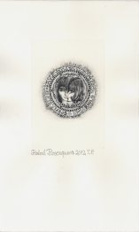 Objectbeschreibung: Komplexes Aggregat verschiedener Drucktechniken und anderer künstlerischer Anwendungen auf Kupferdruckbütten. Pseudo Graphicka (Originalstatus) 19,3 cm auf 31,9 cm signiert, 2012