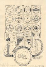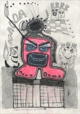 Objectbeschreibung: Komplexes Aggregat verschiedener Drucktechniken und anderer künstlerischer Anwendungen auf SM-Papier (Sammlerkonservierung). Pseudo Graphicka (Originalstatus) 18,7 cm auf 27,8 cm signiert, 2012