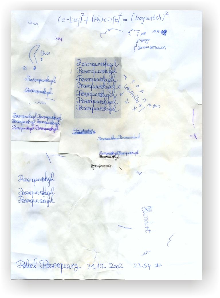 Objectbeschreibung: Kugelschreiber auf SM-Papier. 29,7 cm auf 21 cm signiert, 31. 12. 2002 Wert: 24 RQK