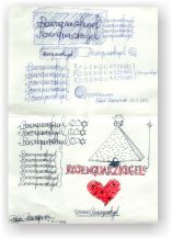 Objectbeschreibung: Kugelschreiber und Bleistift auf Büttenpapier. 20 cm auf 14,8 cm signiert, 19. 12. 2002 Wert: 21 RQK