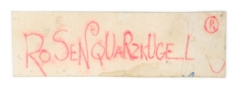 Objectbeschreibung: Roter Kugelschreiber auf Pappe. 9,5 cm auf 3 cm unsigniert, 2002 Wert: 1 RQK