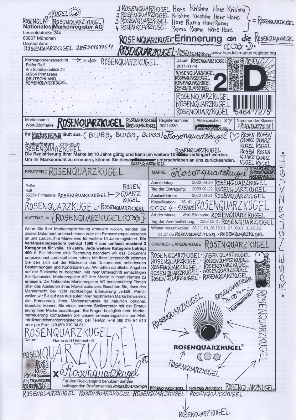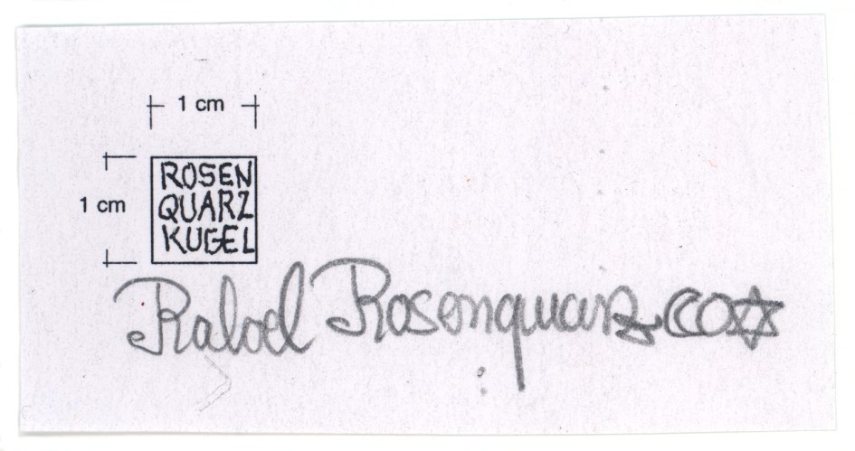 Werkeverz.: RAL/”Freundliche Grüße der Rosenquarzkugel”/180*67*000*/1199