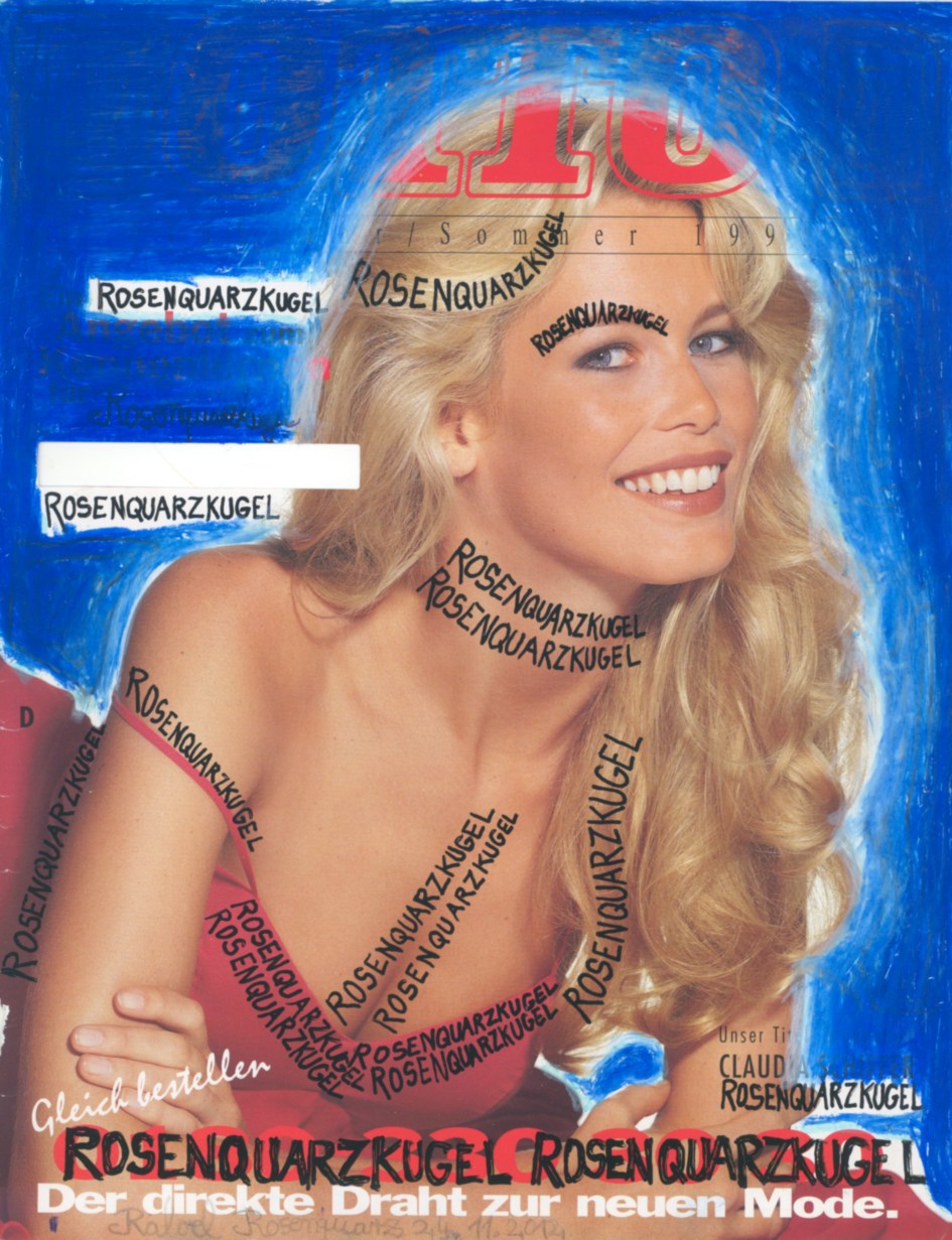 Objectbeschreibung: Lackstift und Wachskreide auf Blatt aus Modemagazin. 21,2 cm auf 28,2 cm signiert, Feb. 2012 Wert: 15 RQK