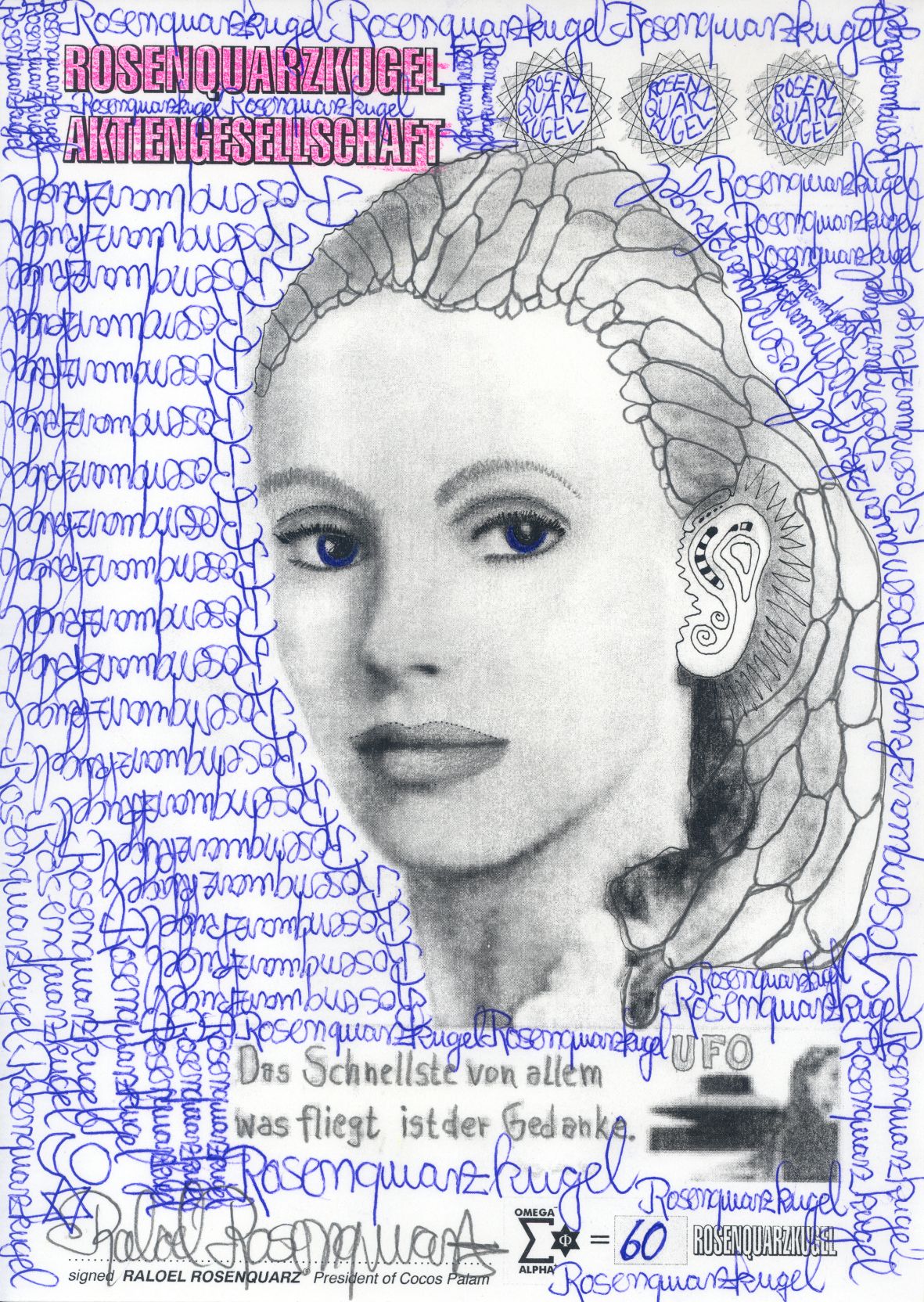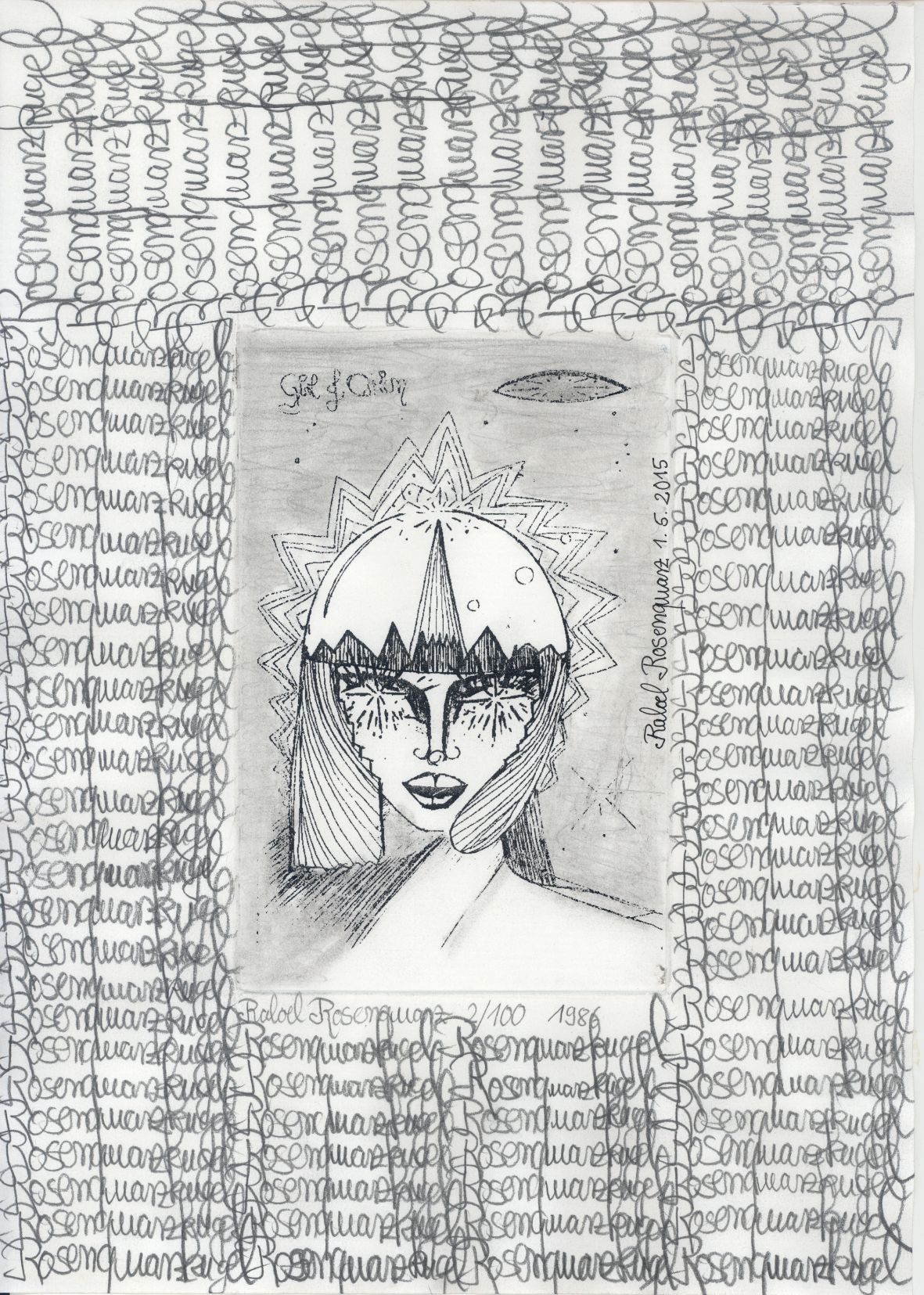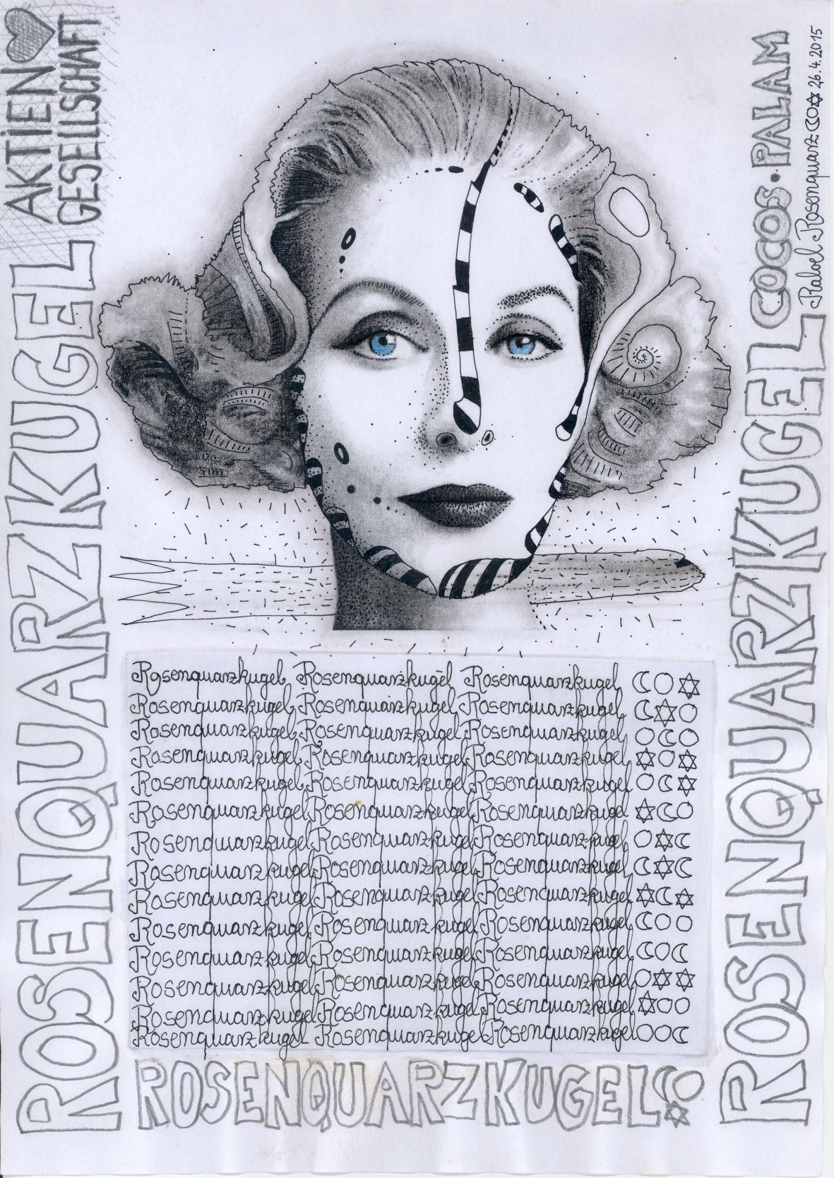 Objectbeschreibung: Bleistift, Rapidograph und Kugelschreiber auf Laserdruck, 21 cm auf 29,7 cm signiert, 13. 4. 2015 Wert: 36 RQK
