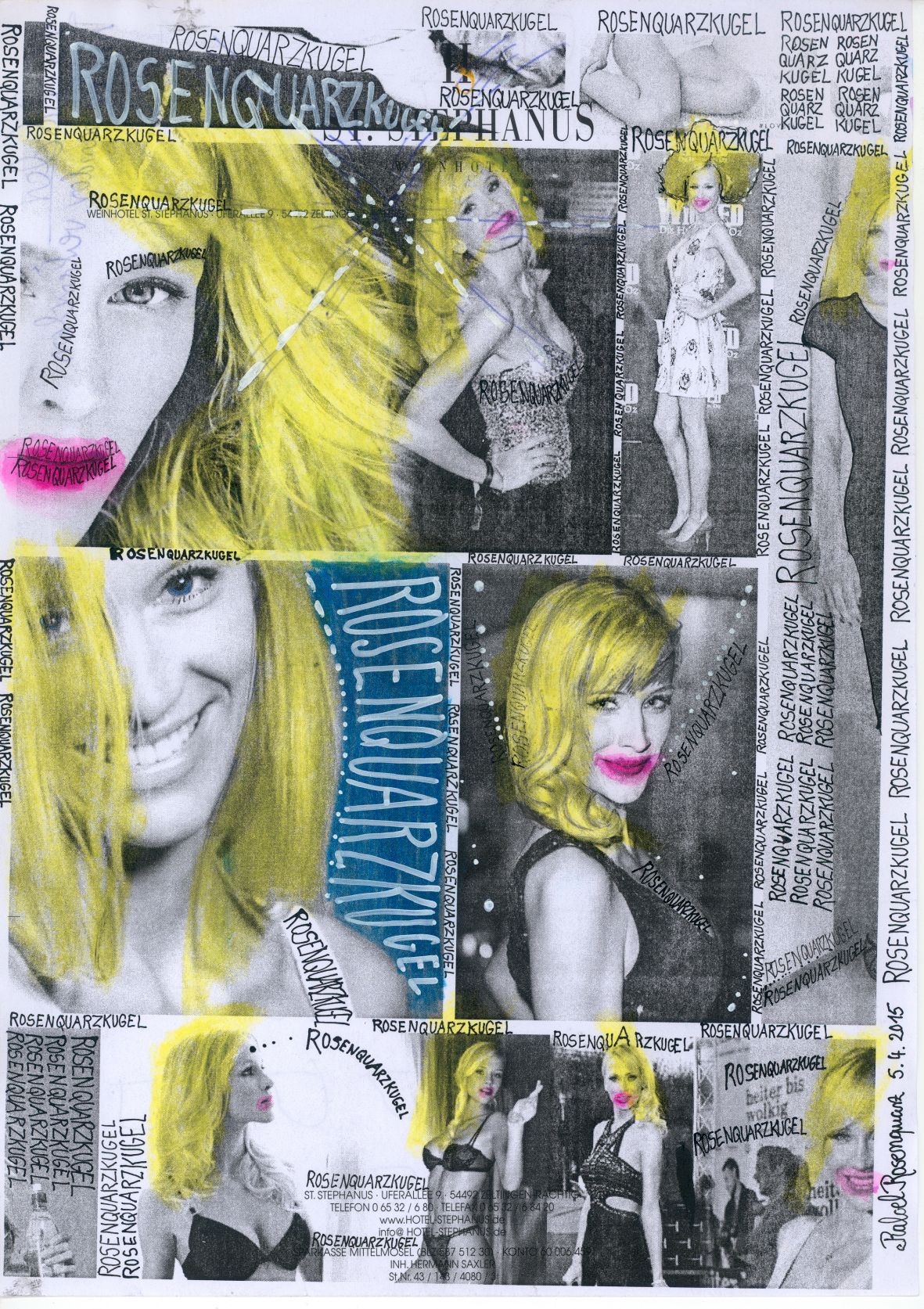Objectbeschreibung: Lackstift, Buntstifte und Kugelschreiber auf Laserdruck, 21 cm auf 29,7 cm signiert, 4. 5. 2015 Wert: 14 RQK