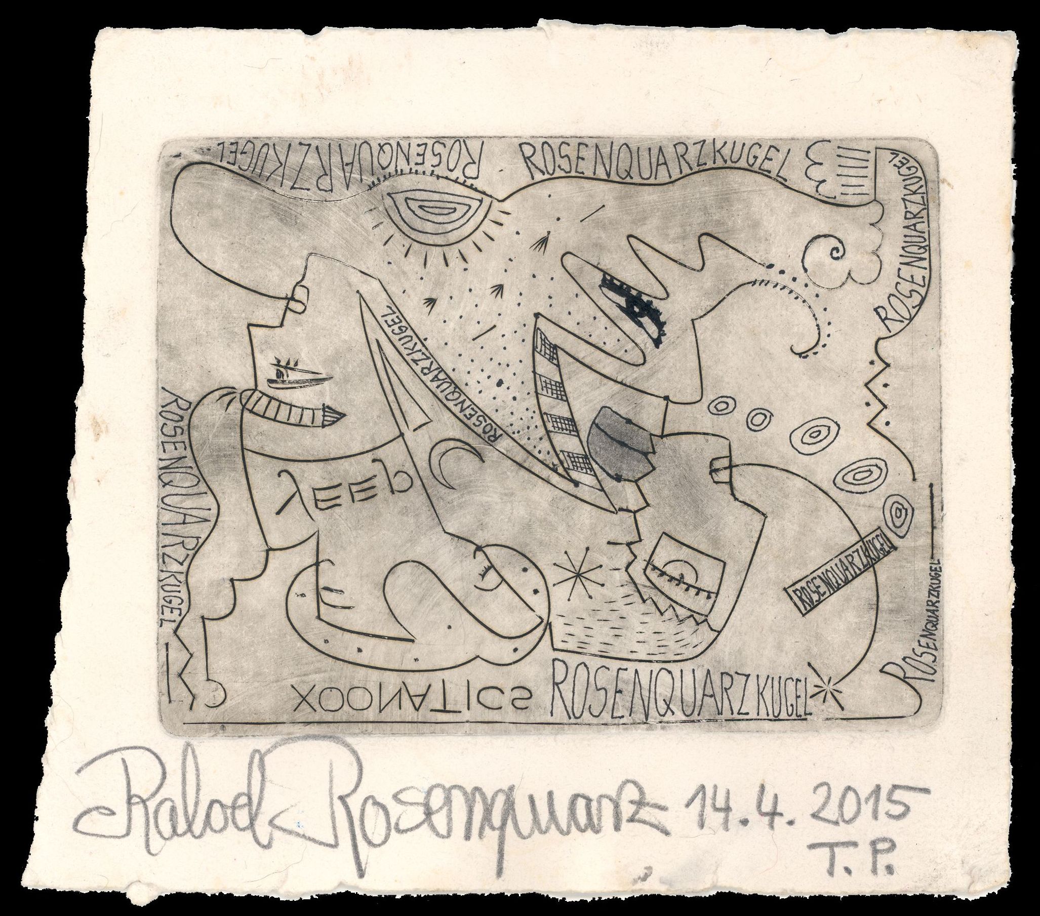 Objectbeschreibung: Aufkleber und Rapidograph auf Kupferstichdruck von R. Rosenquarz, 13,6 cm auf 16,5 cm signiert, 14. 4. 2015 Wert: 43 RQK