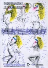 Objectbeschreibung: Lackstift, Rapidograph, Buntstift, Bleistift und Kugelschreiber auf Kunstkatalogfragment. 30,1 cm auf 15 cm, zweiseitig signiert, 3. 5. 2015 Wert: 128 RQK