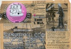 Objectbeschreibung: Aufkleber, Lackstift und Rapidograph auf alte Zeitung, 27,1 cm auf 18,7 cm signiert, 20. 4. 1889 Wert: 28 RQK