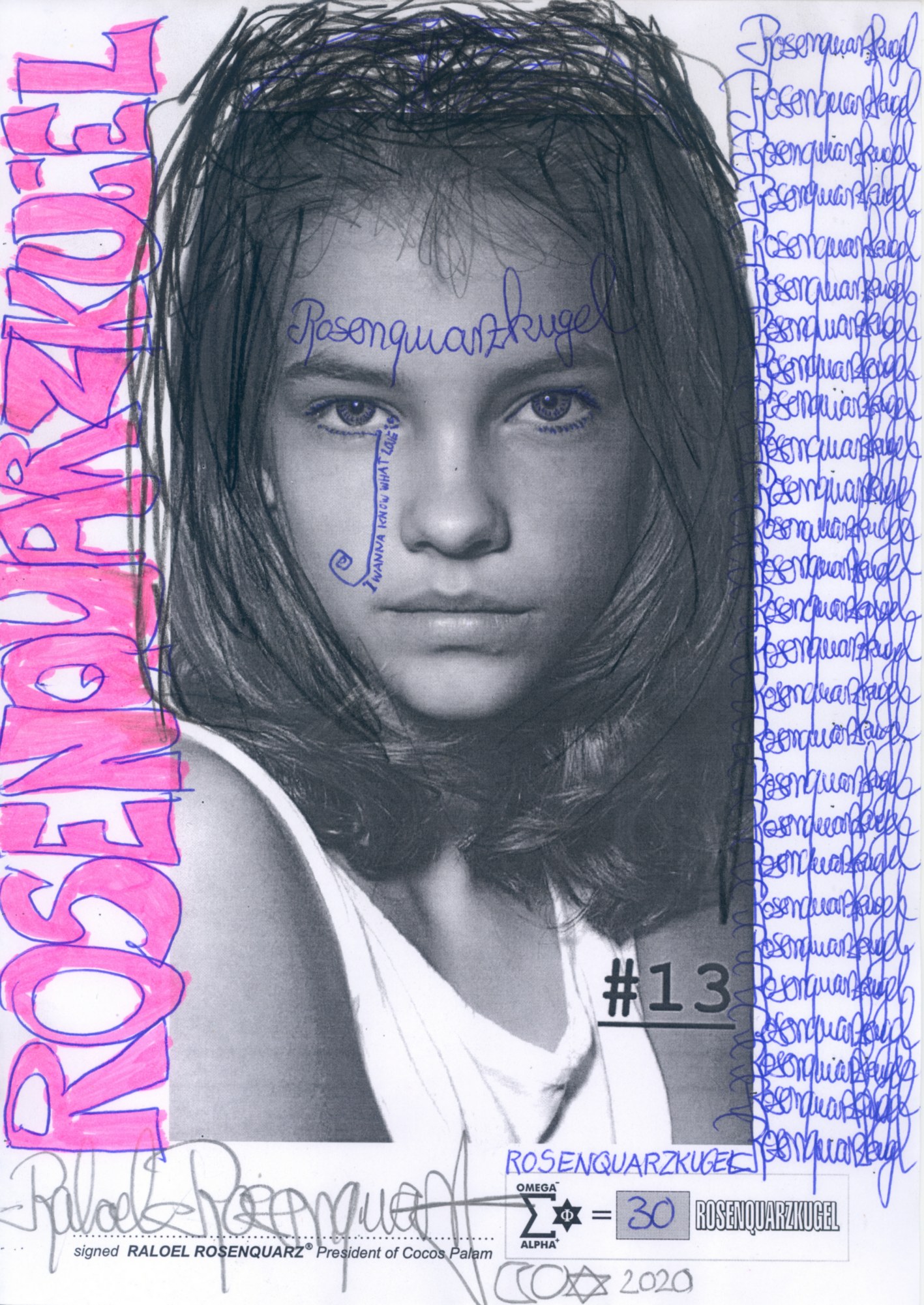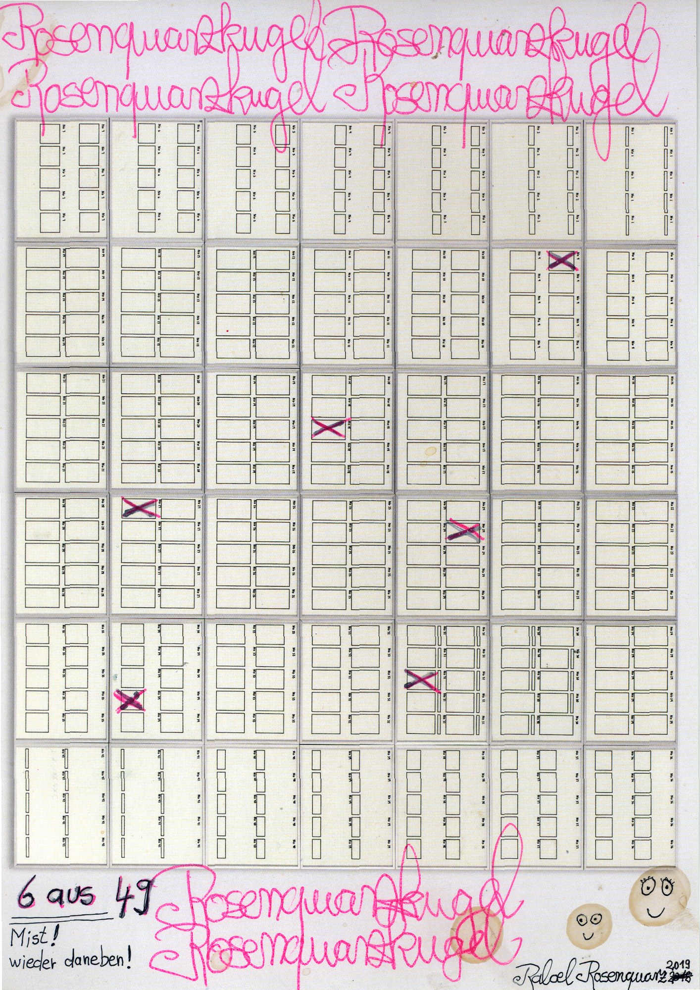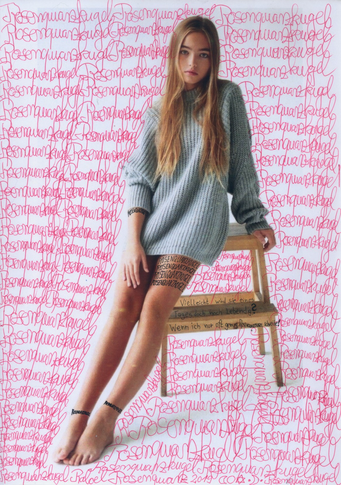 Objectbeschreibung: Filzstift, Bleistift und Kugelschreiber auf Laserdruck. 21 cm auf 29,7 cm signiert, 2019 Wert: 30 RQK