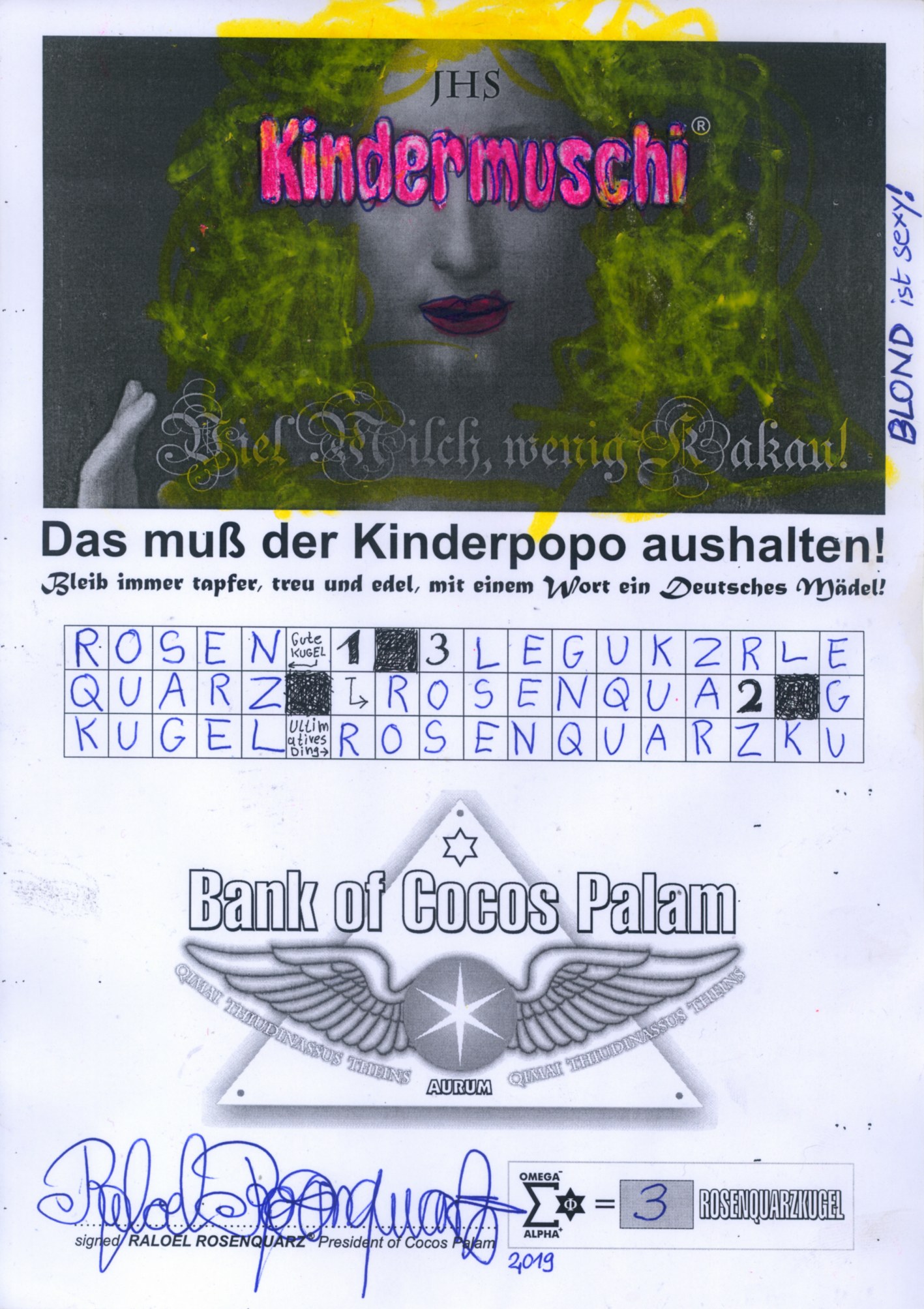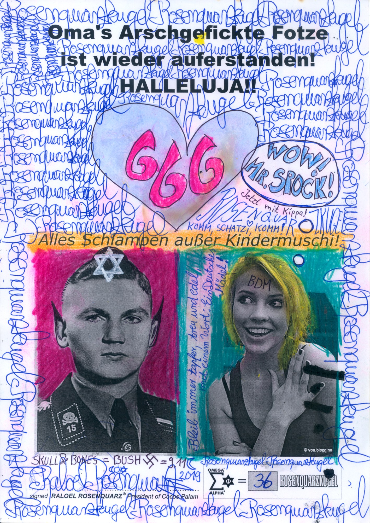 Werkeverz.: RAL/”Ist die Kindliche Kaiserin nackt? Nein! Sie wurde vom Erzengel Raloel Rosenquarz persönlich bei Vollmond mit Perwoll gewaschen!”/210*297*000*/1847
