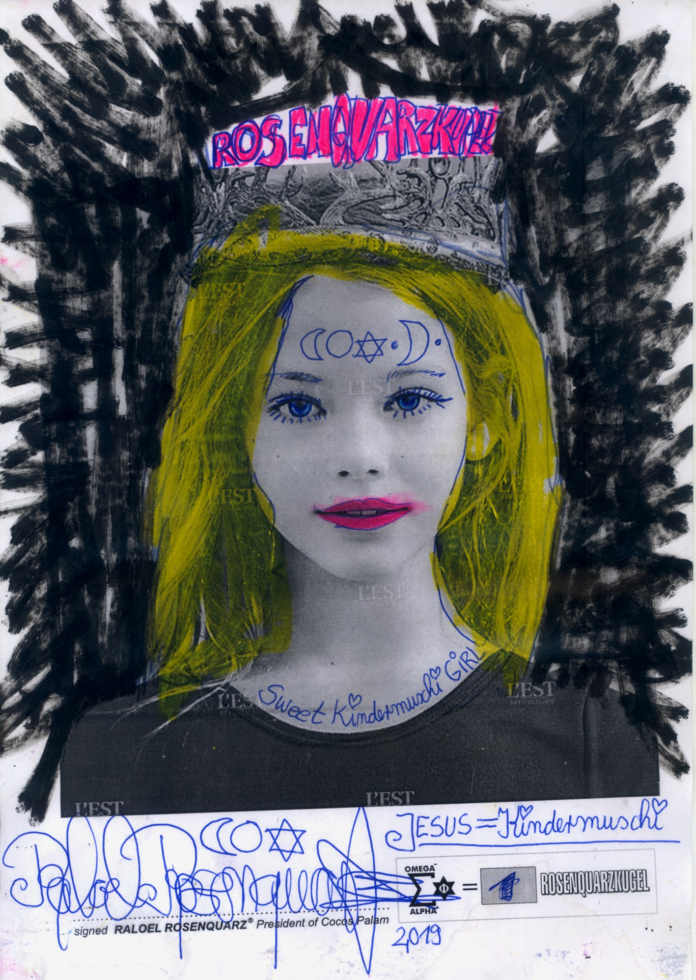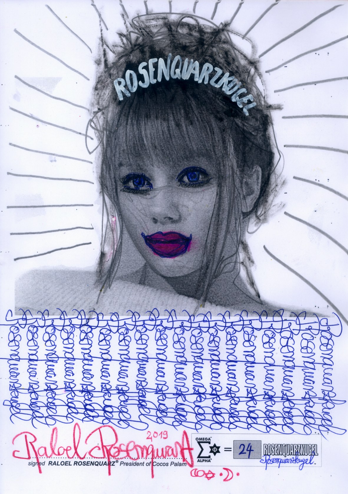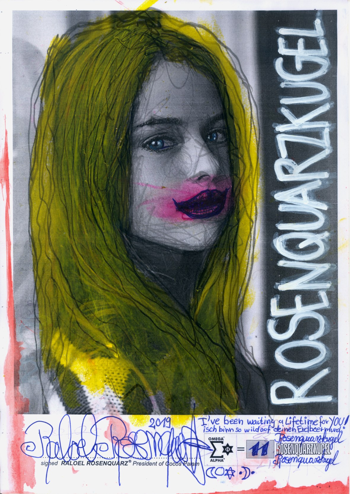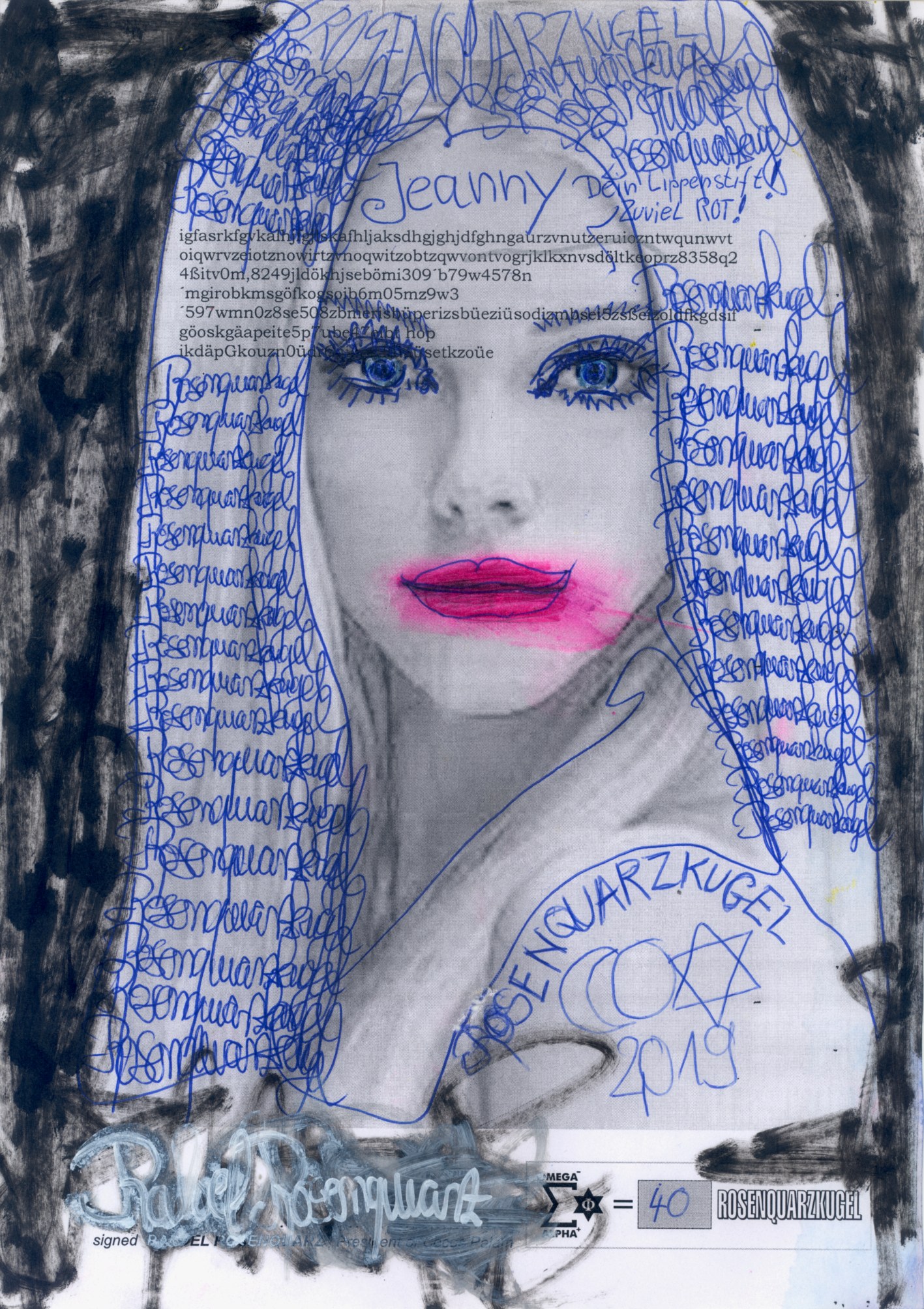 Objectbeschreibung: Lackstift, Bleistift und Kugelschreiber auf Laserdruck. 21 cm auf 29,7 cm signiert, 2019 Wert: 1 RQK