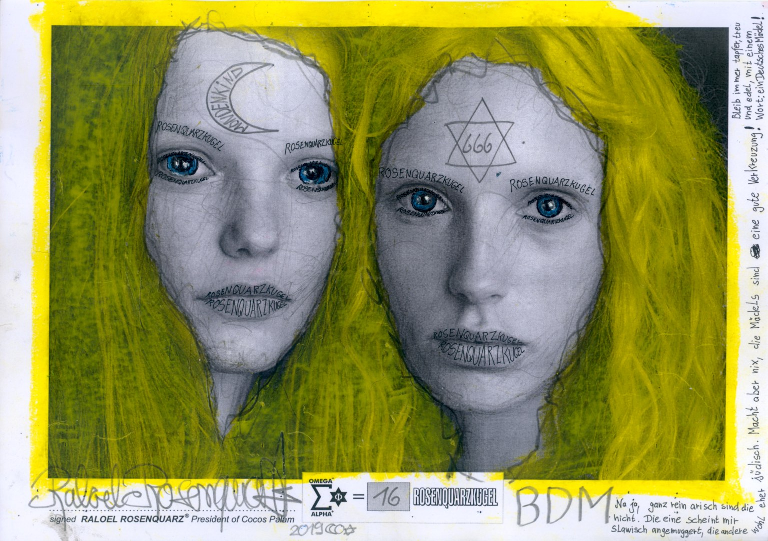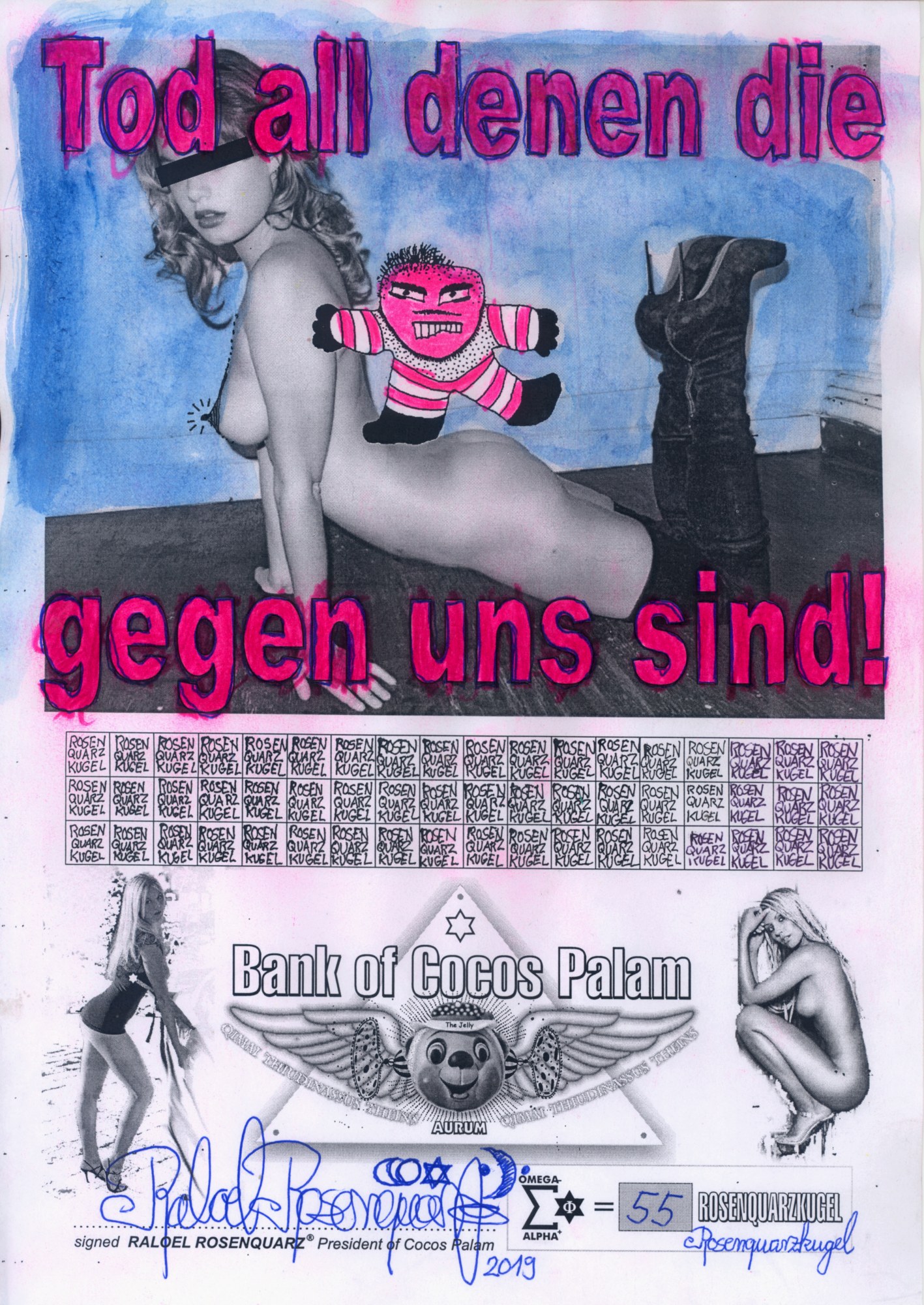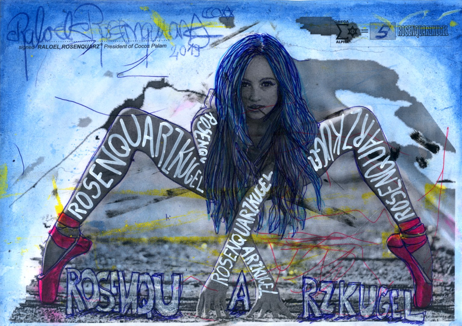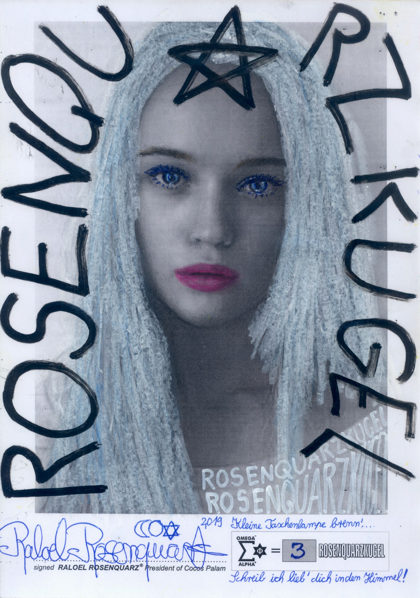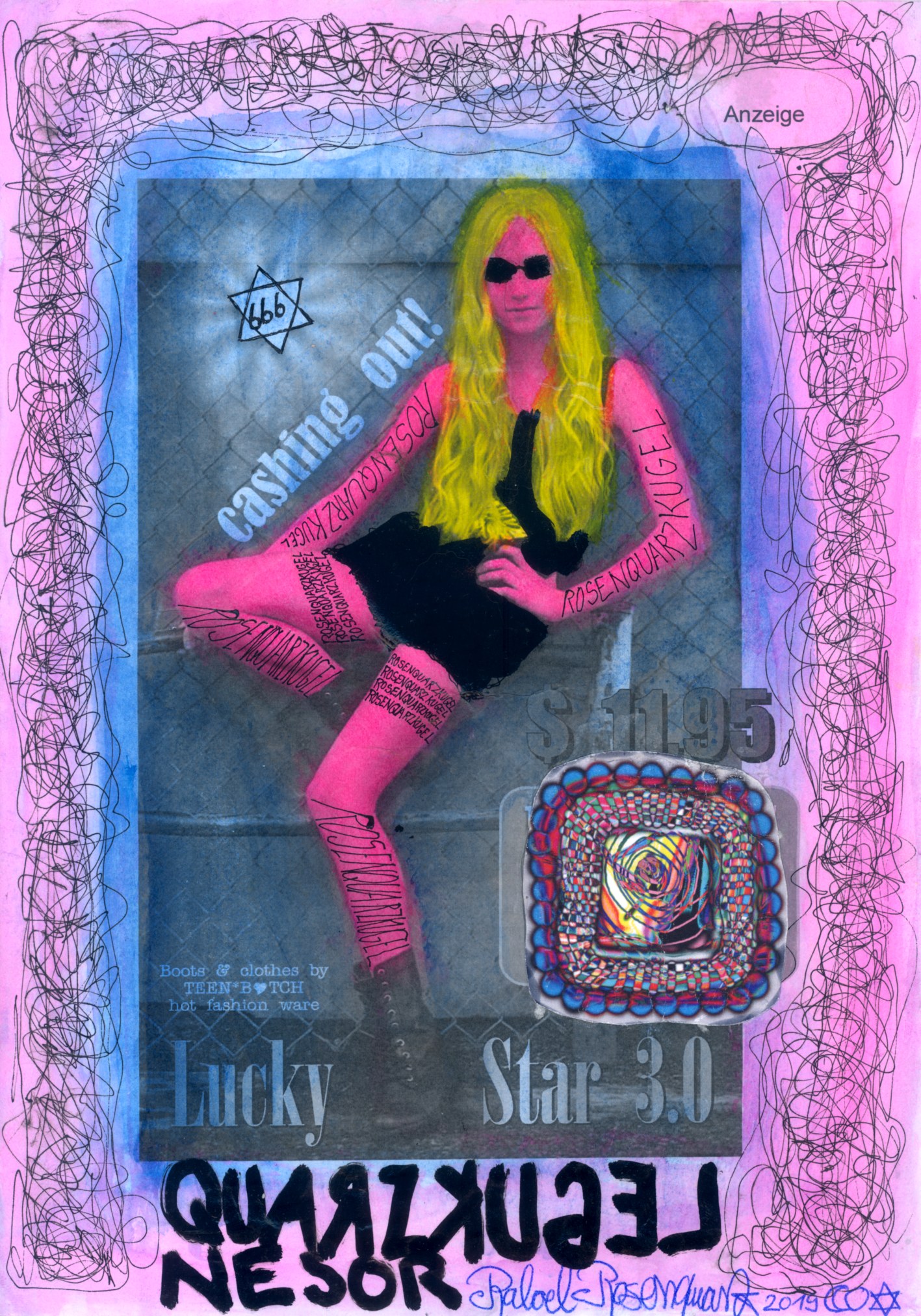 Objectbeschreibung: Lackstift, Bleistift und Kugelschreiber auf Laserdruck. 21 cm auf 29,7 cm signiert, 2019 Wert: 1 RQK