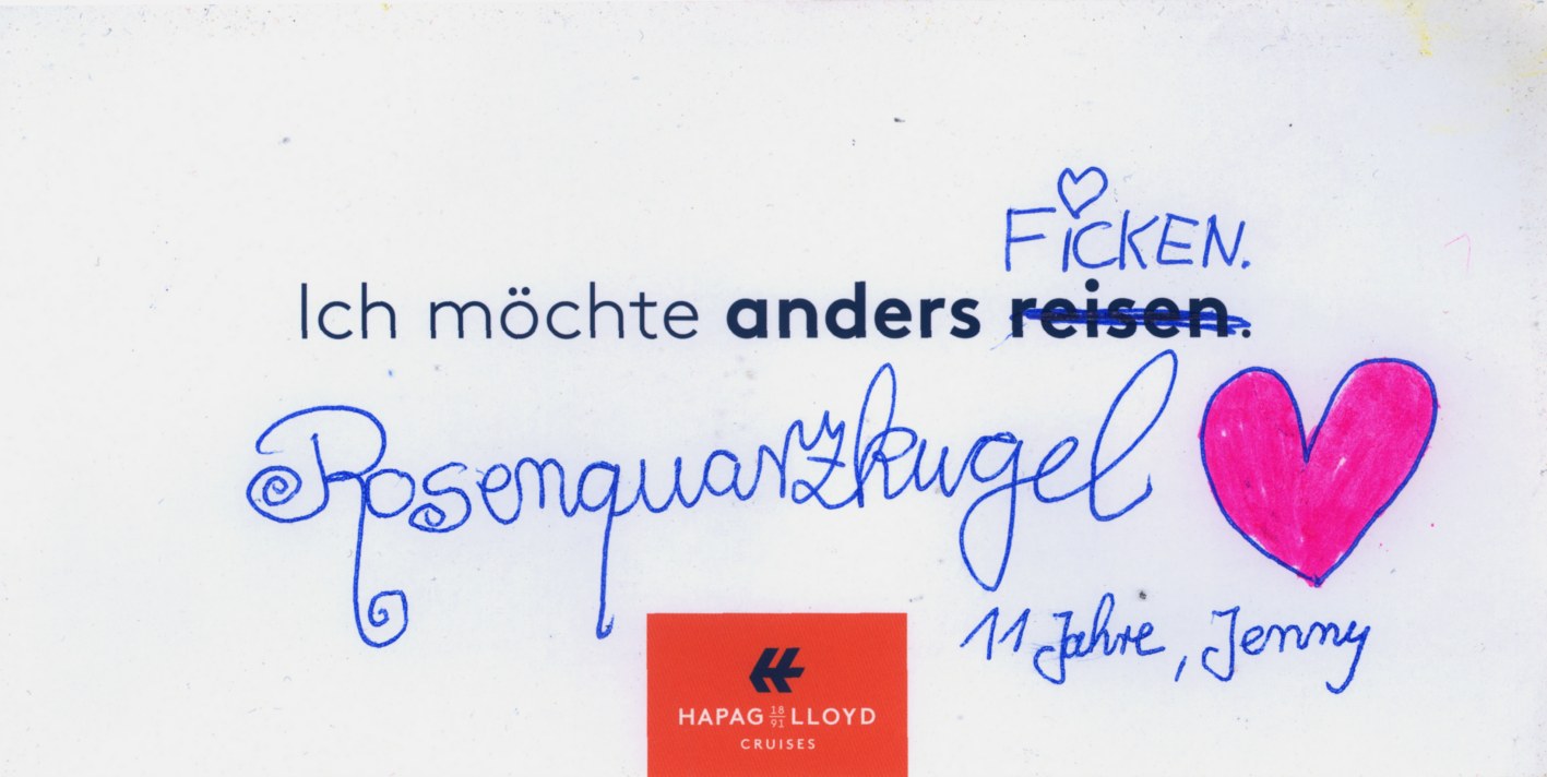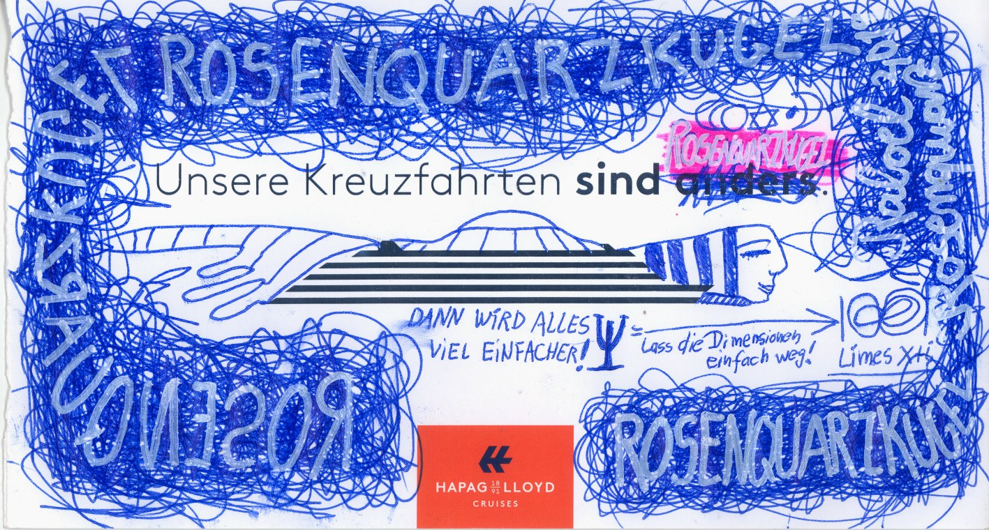 Werkeverz.: RAL/”Unsere Kreuzfahrten sind Rosenquarzkugel”/220*120*000*/1882