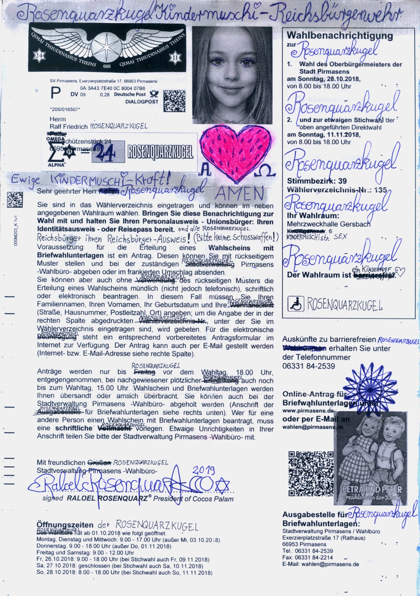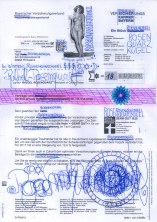 Objectbeschreibung: Blauer und roter Kugelschreiber mit Laserdruck auf Schreiben der KSK. 21 cm auf 29,7 cm signiert, 2019 Wert: 37 RQK